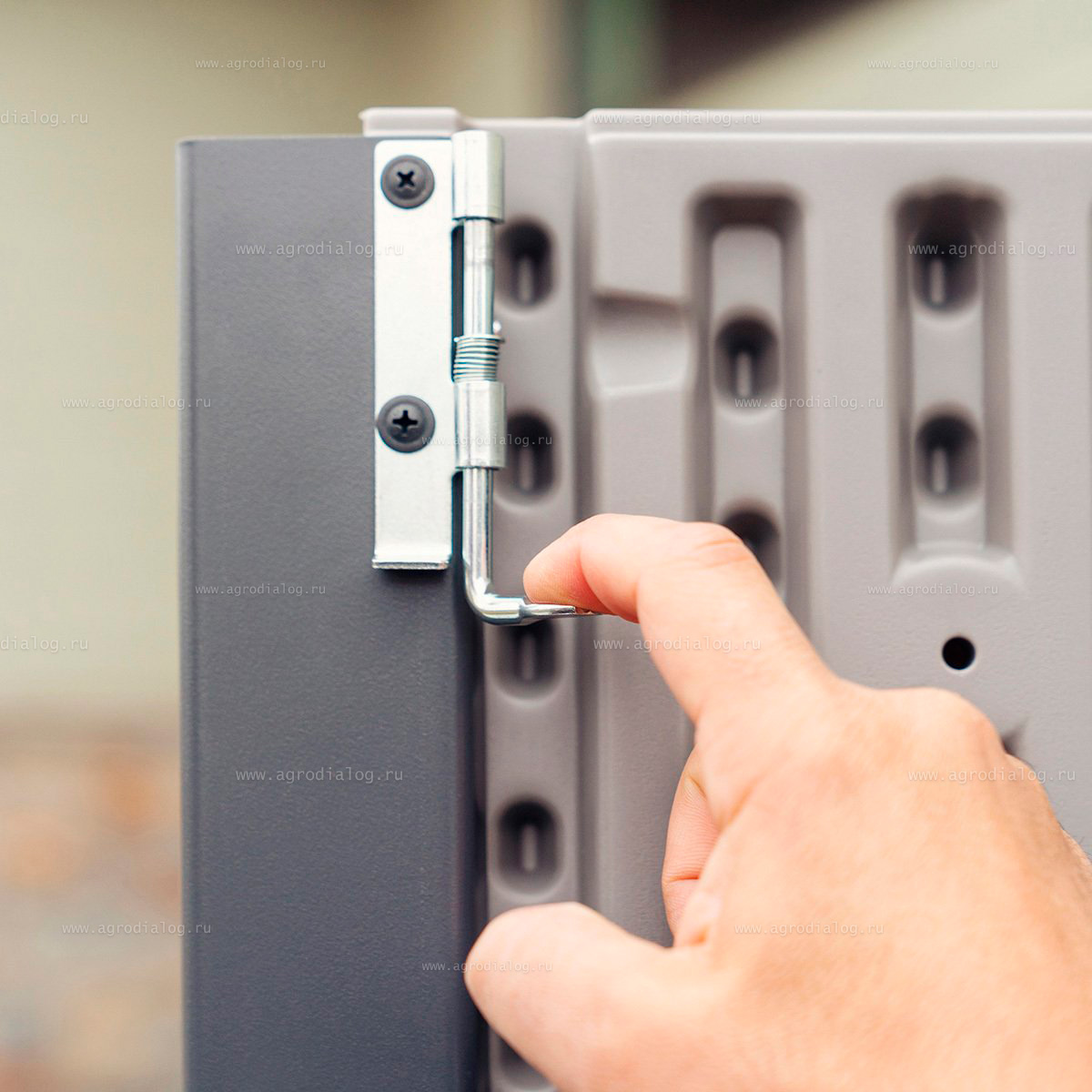 - Ширина дверного проема: 166,4 см. Двери закрываются на задвижку. Шкаф оборудован петлями для навесного замка (замок не входит в комплект).