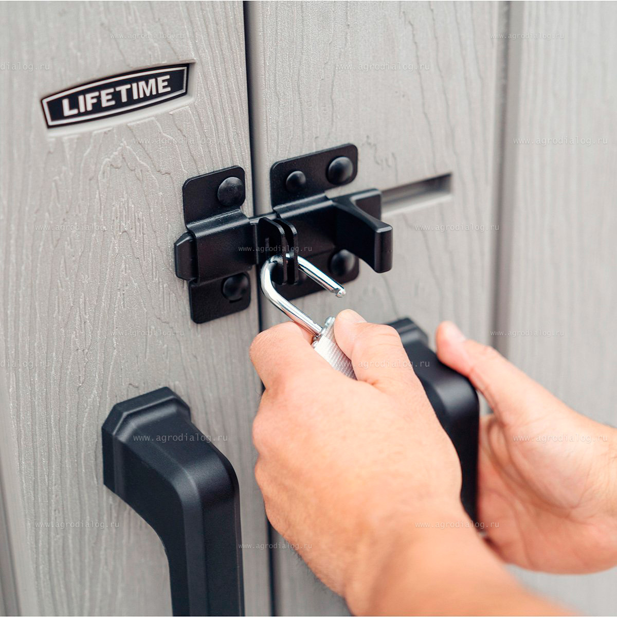 - Шкаф Lifetime Woodlook 60331 армирован стальным каркасом и способен выдерживать высокие снеговые нагрузки.