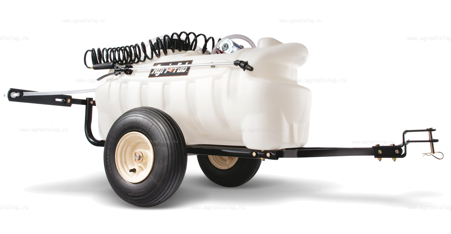 Опрыскиватель 190-537-000 позволяет применять гербициды, инсектициды и другие вещества на почве, деревьях и кустарниках. Все шланги, крепежи и распыляющие насадки смонтированы на заводе, что обеспечивает высокое качество и легкую сборку. В конструкции опрыскивателя - ручная штанга и 4,5-метровый шланг для распыления на расстояние до 9 метров. Производительность - 6,8 л/мин. Максимальное давление - 4,8 бар. Максимальная заправка - 95 л. Поток регулируется от направленной струи до распыления туманом. 2 сопла, смонтированных в задней части, позволяют обрабатывать поверхность шириной до 2 м. Бункер снабжен сливной пробкой. Опрыскиватель может быть подключен к аккумулятору трактора с возможностью быстрого отключения. Пневматические колеса обеспечивают легкое передвижение по неровной поверхности. Вес - 24 кг.