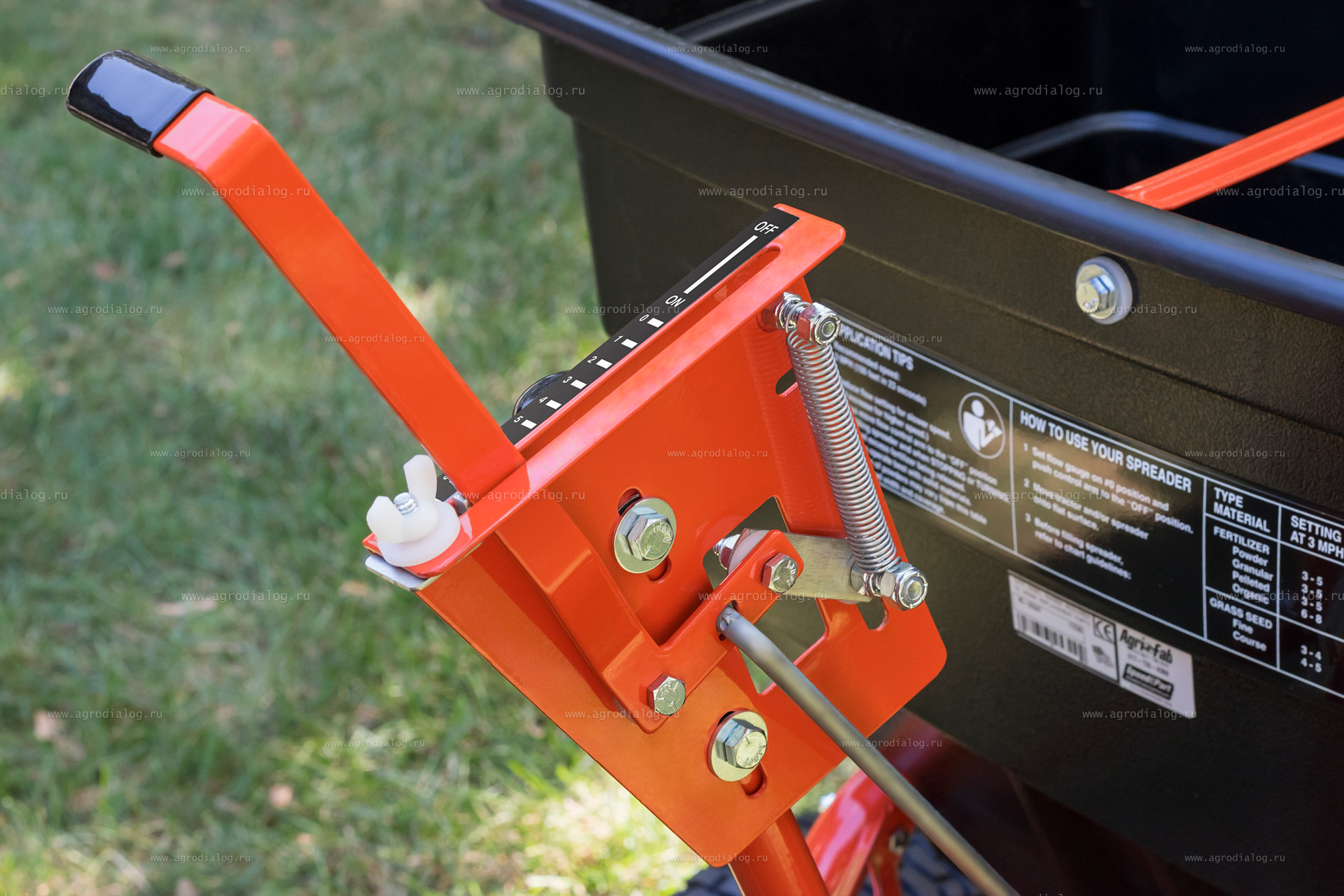 196-542-000 Разбрасыватель удобрений используется для распределения семян, удобрений, песка и других сыпучих веществ. Большой объем бункера (87 кг.) позволяет экономить время. Полиэстровый бункер устойчив к ржавчине и царапинам. Высокопрочная стальная рама. Широкие колеса обеспечивают устойчивость.