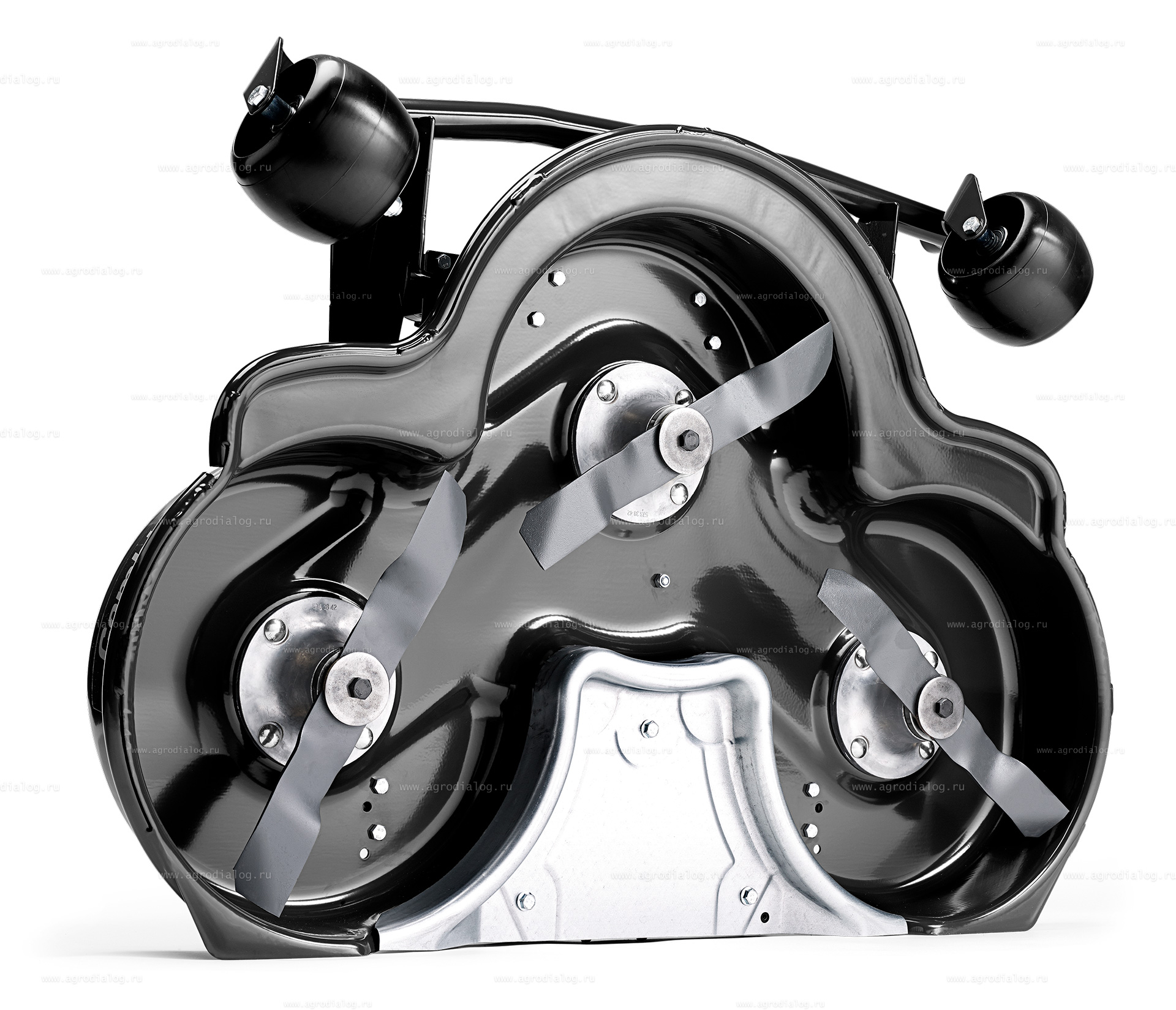Ширина скашивания 112 см. После снятия заглушки BioClip (мульчирование) работает в режиме выброса травы назад, что позволяет вдвое увеличить производительность. Дека Husqvarna 9671885-01 изготовлена из листа прочнейшей штампованной стали толщиной 4,5 мм. Глубокий желоб внутри деки (152 мм.) усиливает процесс выброса для максимального рассеивания скошенной травы.