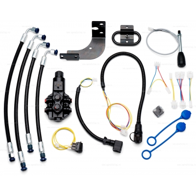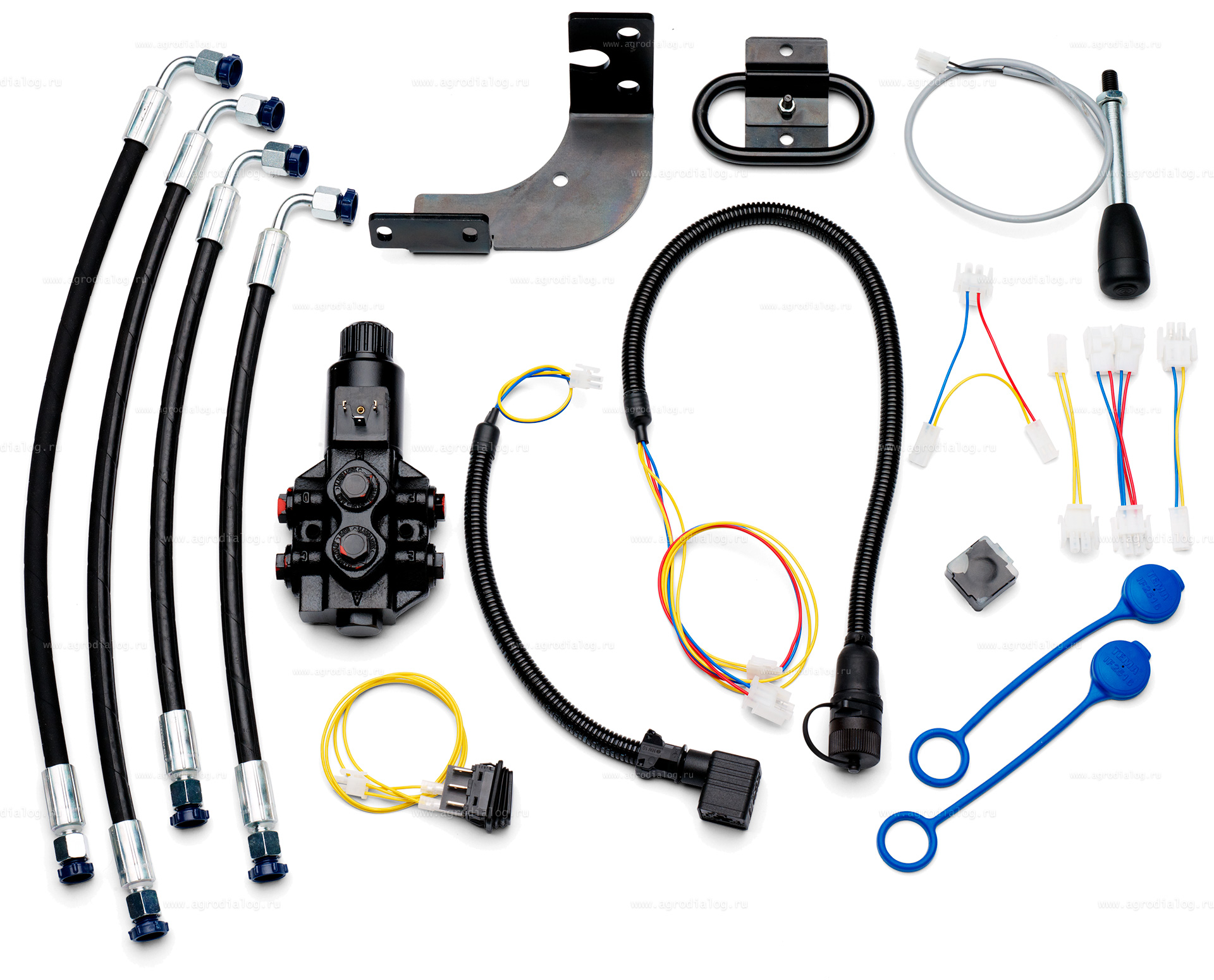 Два дополнительных гидравлических соединителя для управления устанавливаемым спереди навесным оборудованием. Включает клапаны, переключатель, шланги с соединителями и провода.