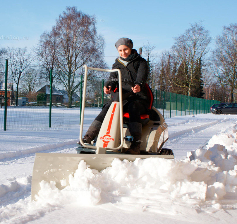 Навесной отвал для уборки снега Cramer 1428070. Ширина захвата - 120 см. Изготовлен из прочной листовой стали с антикоррозийным покрытием. Отвал оснащен пружинно-откидным механизмом защиты от наезда на препятствие, т.е. в случае столкновения отвала с камнем или бордюром происходит складывание лопаты и преодоление препятствия в сложенном состоянии. Затем при помощи возвратных пружин лопата откидывается обратно. Вес - 44 кг.