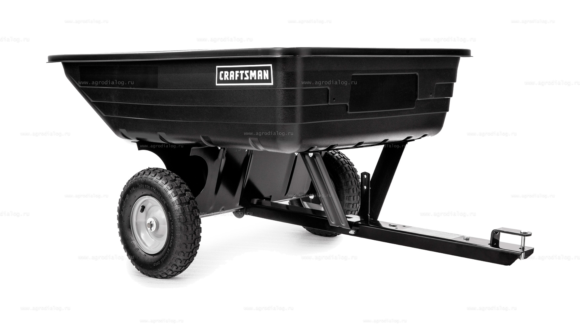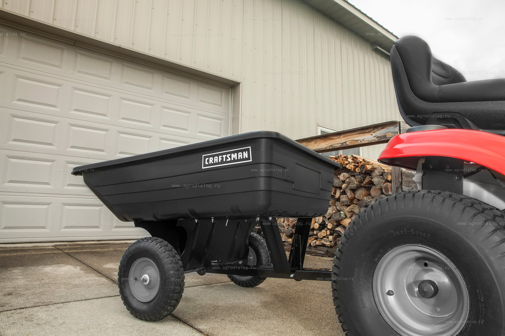 Тележка-прицеп Craftsman 24489 используется для садовых работ - перевозка песка, гравия, щебня и т.п. Прочное полипропиленовое корыто. Удобная ручка облегчает разгрузку. Загрузка - 272 кг. Габариты 124*77*28 см. Пневматические колеса - 33 см. Вес - 28 кг. Подходит к любому трактору Craftsman.