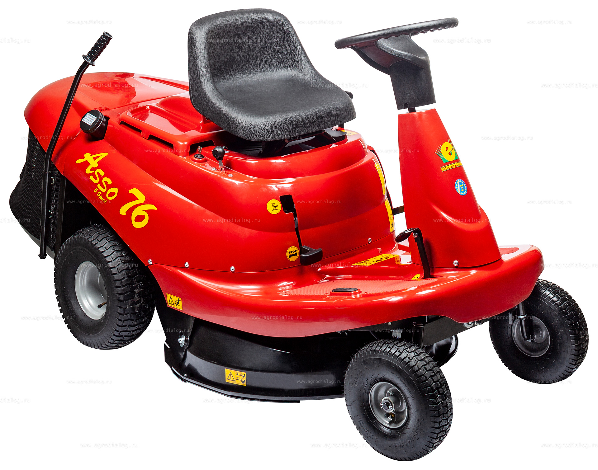 - Садовый минирайдер Eurosystems ASSO 76 оснащен большим травосборником объемом 150 литров. Процедура опустошения производится легко и быстро.