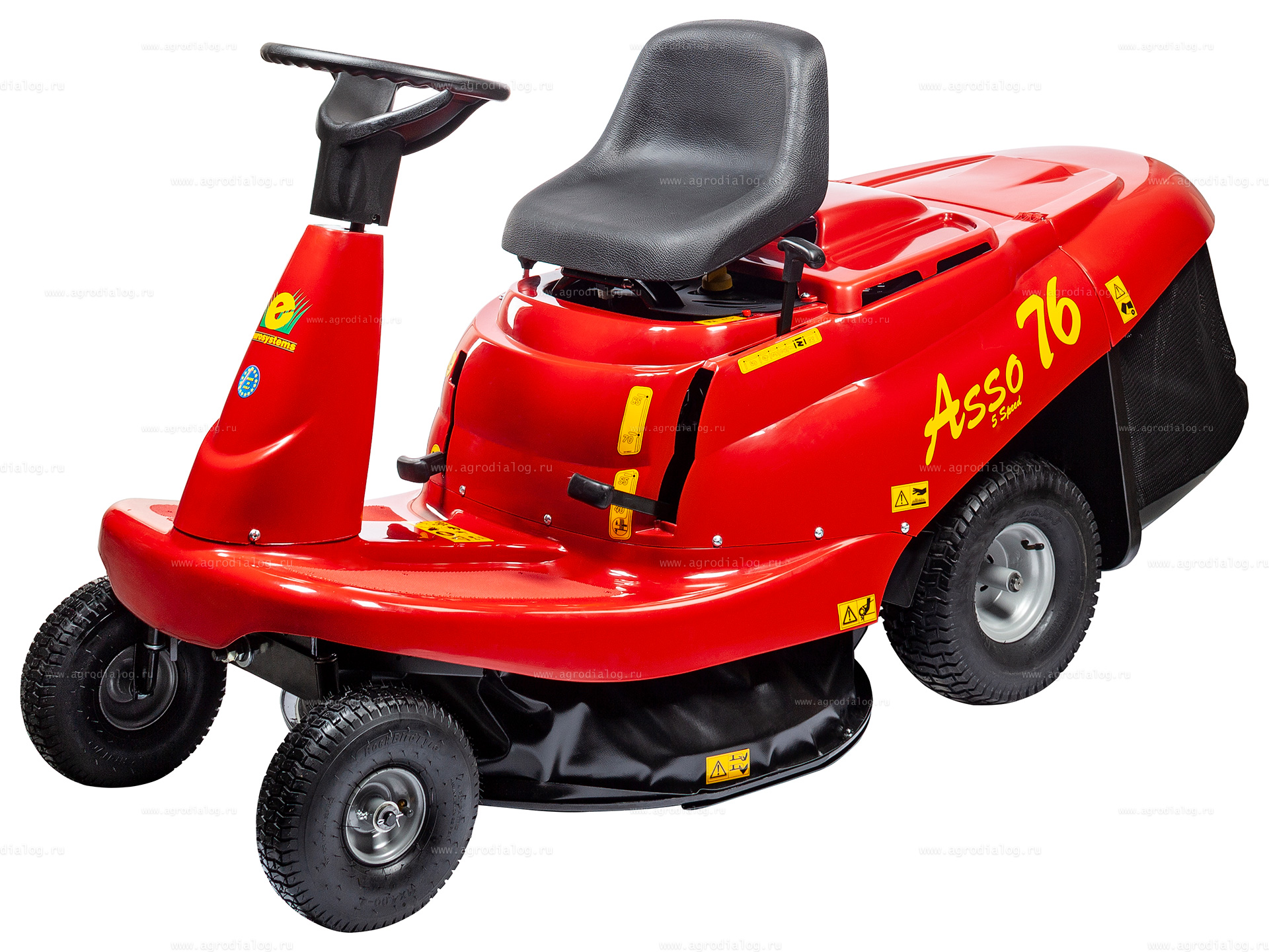 - Садовый минирайдер Eurosystems ASSO 76 снабжен надежной механической трансмиссией с пятью передними передачами, позволяющими регулировать скорость в соответствии с типом поверхности и скашиваемой растительностью и одной реверсной передачей.