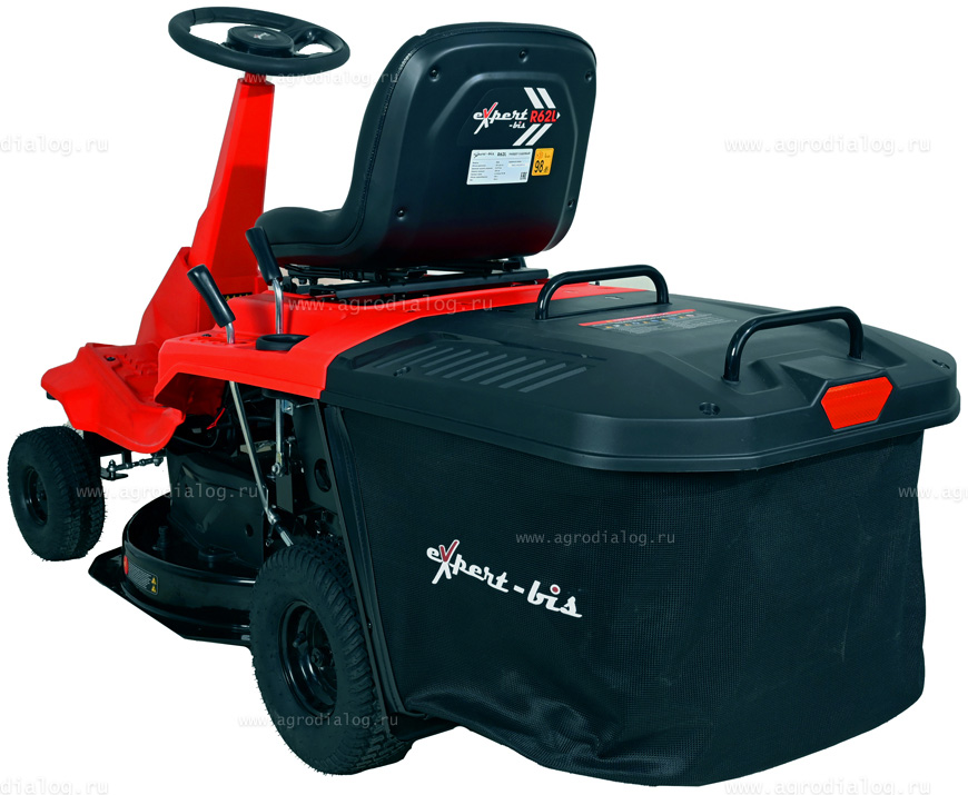 - Садовый минирайдер EXPERT BIS R62L оснащен большим травосборником объемом 150 литров. Процедура опустошения производится легко и быстро.