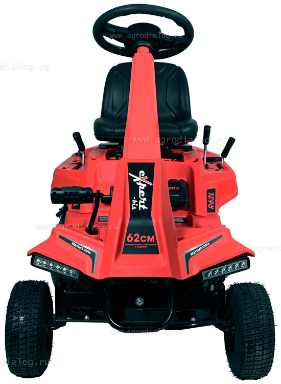 - Фары делают садовый минирайдер EXPERT BIS R62L видимым и обеспечивают безопасную эксплуатацию, как в дневное, так и вечернее время.
