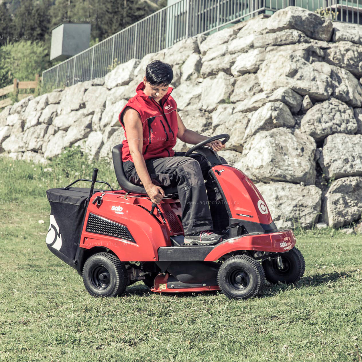 - Садовый минирайдер Solo by AL-KO Rider R 7-65.8 HD оснащен большим травосборником объемом 130 литров. Процедура опустошения производится легко и быстро одним движение руки, при этом нет необходимости покидать сидение оператора.