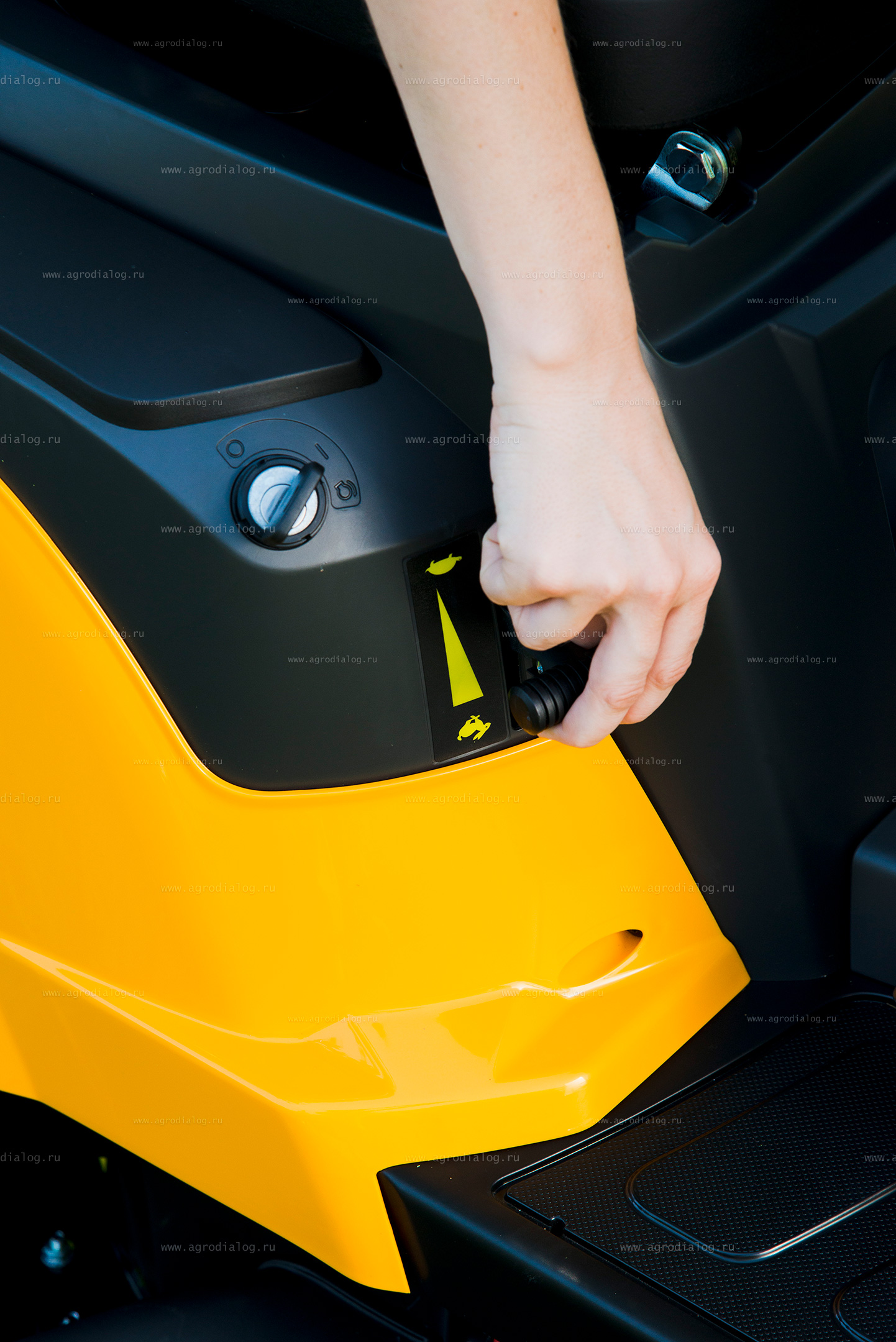 - Гидростатическая трансмиссия обеспечивает чрезвычайно плавное изменение скорости и превосходный комфорт во время вождения. С помощью педали возможна бесступенчатая регулировка как скорости, так и движения вперед и назад. Таким образом, обе руки остаются на рулевом колесе, поскольку включение и выключение сцепления и переключение передач не требуется. Вы можете плавно ускоряться и замедляться, что упрощает работу вокруг деревьев, декоративных элементов и других препятствий.