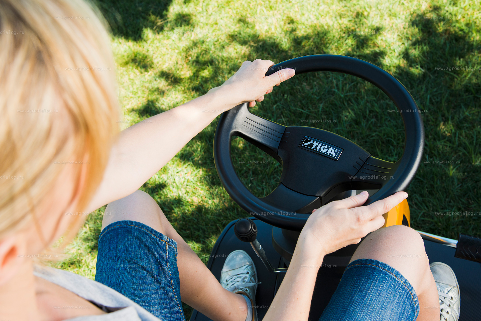 - Гидростатическая трансмиссия обеспечивает чрезвычайно плавное изменение скорости и превосходный комфорт во время вождения. С помощью педали возможна бесступенчатая регулировка как скорости, так и движения вперед и назад. Таким образом, обе руки остаются на рулевом колесе, поскольку включение и выключение сцепления и переключение передач не требуется. Вы можете плавно ускоряться и замедляться, что упрощает работу вокруг деревьев, декоративных элементов и других препятствий.