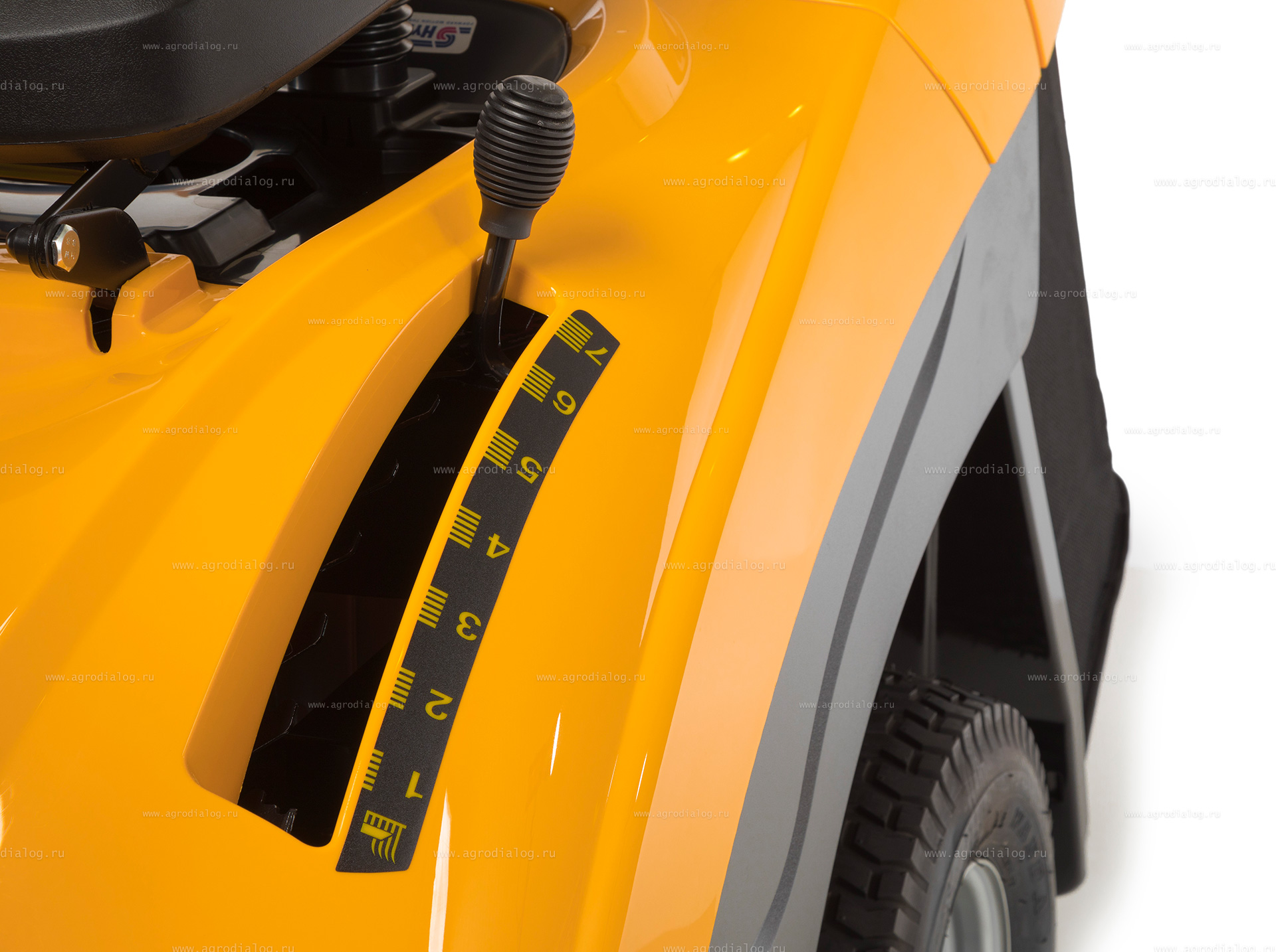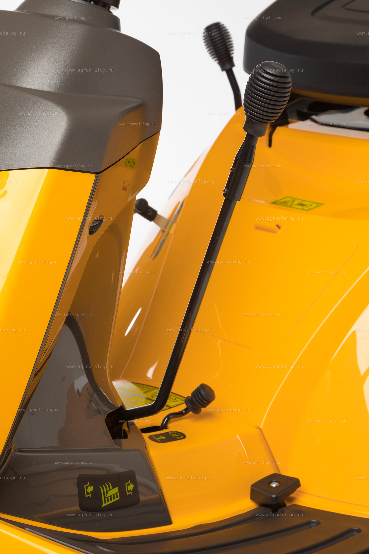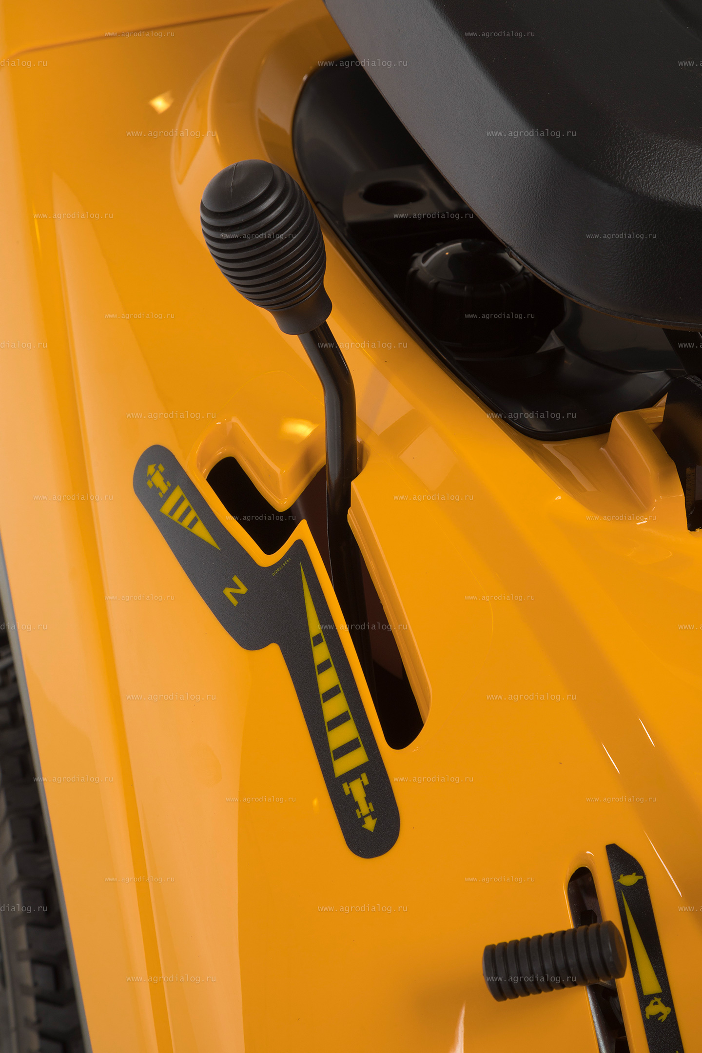 - Гидростатическая трансмиссия обеспечивает чрезвычайно плавное изменение скорости и превосходный комфорт во время вождения. Скорость и направление управляются рычагом, установленным сбоку от сидения.