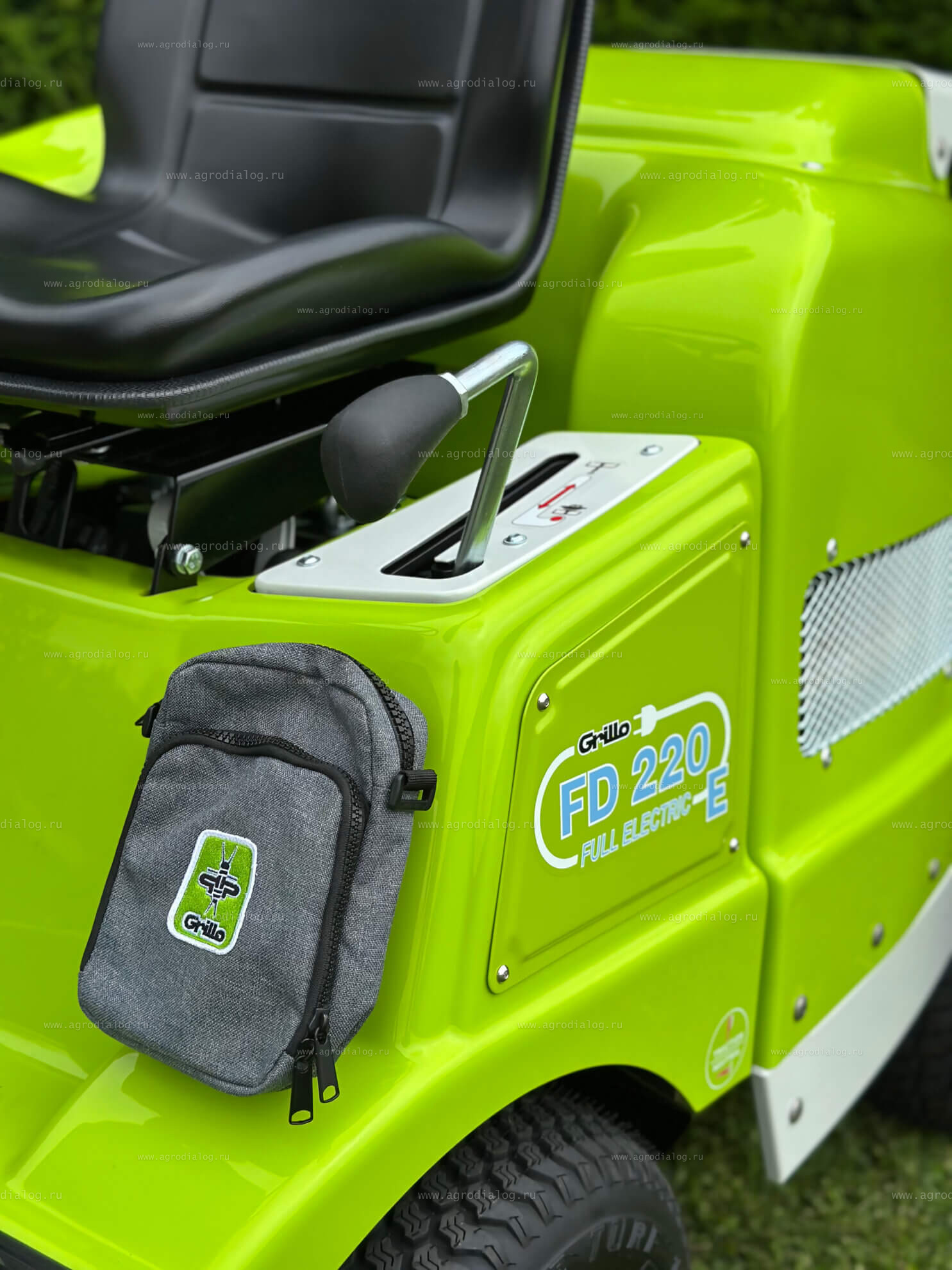 - Аккумуляторный садовый райдер Grillo FD 220 E оснащен электрической трансмиссией, что обеспечивает превосходный комфорт во время вождения. С помощью педали возможна бесступенчатая регулировка как скорости, так и движения вперед и назад.