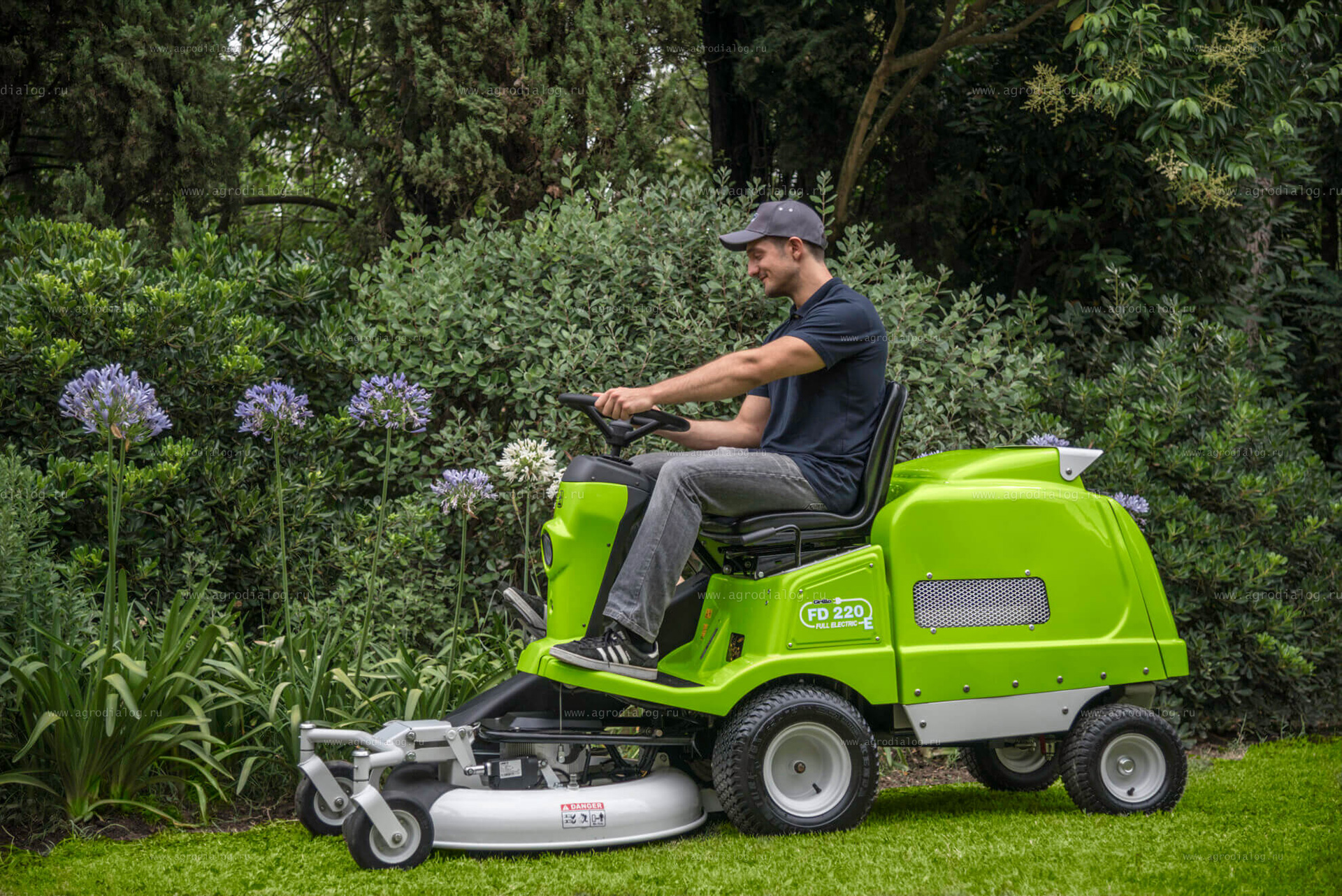 - Аккумуляторный садовый райдер Grillo FD 220 E с передней декой скашивает траву безукоризненно ровно, не приминая ее колесами перед скашиванием, сохраняя великолепную обзорность участка.