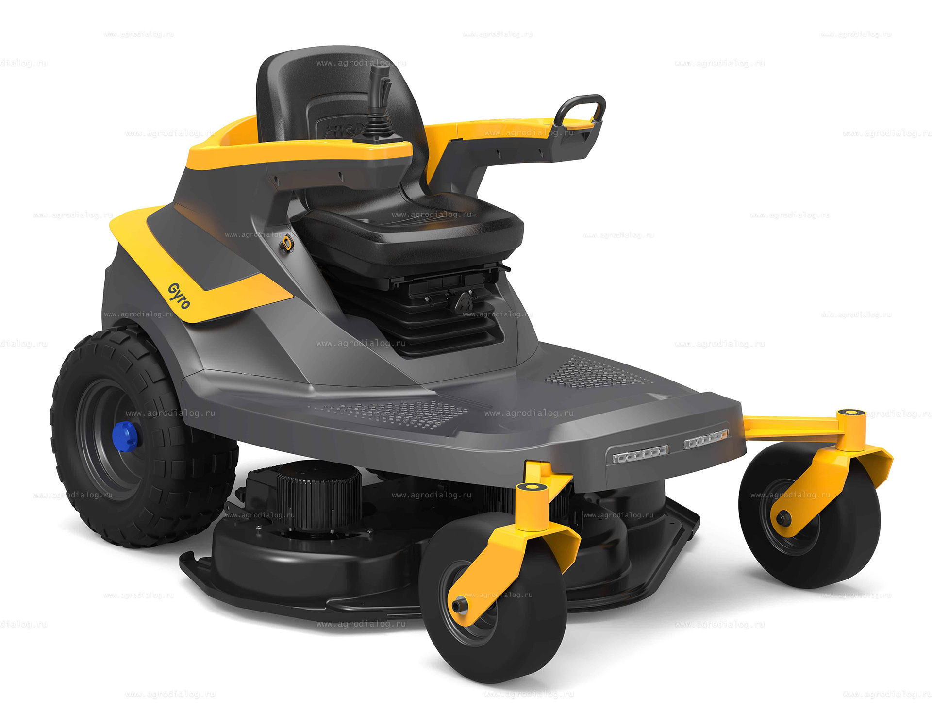 - Аккумуляторный садовый райдер Stiga Gyro 900e оборудован двумя независимыми электрическими трансмиссиями с приводом на каждое колесо. С помощью джойстика возможна бесступенчатая регулировка как скорости, так и движения вперед и назад. Вы можете плавно ускоряться и замедляться, что упрощает работу вокруг деревьев, декоративных элементов и других препятствий.