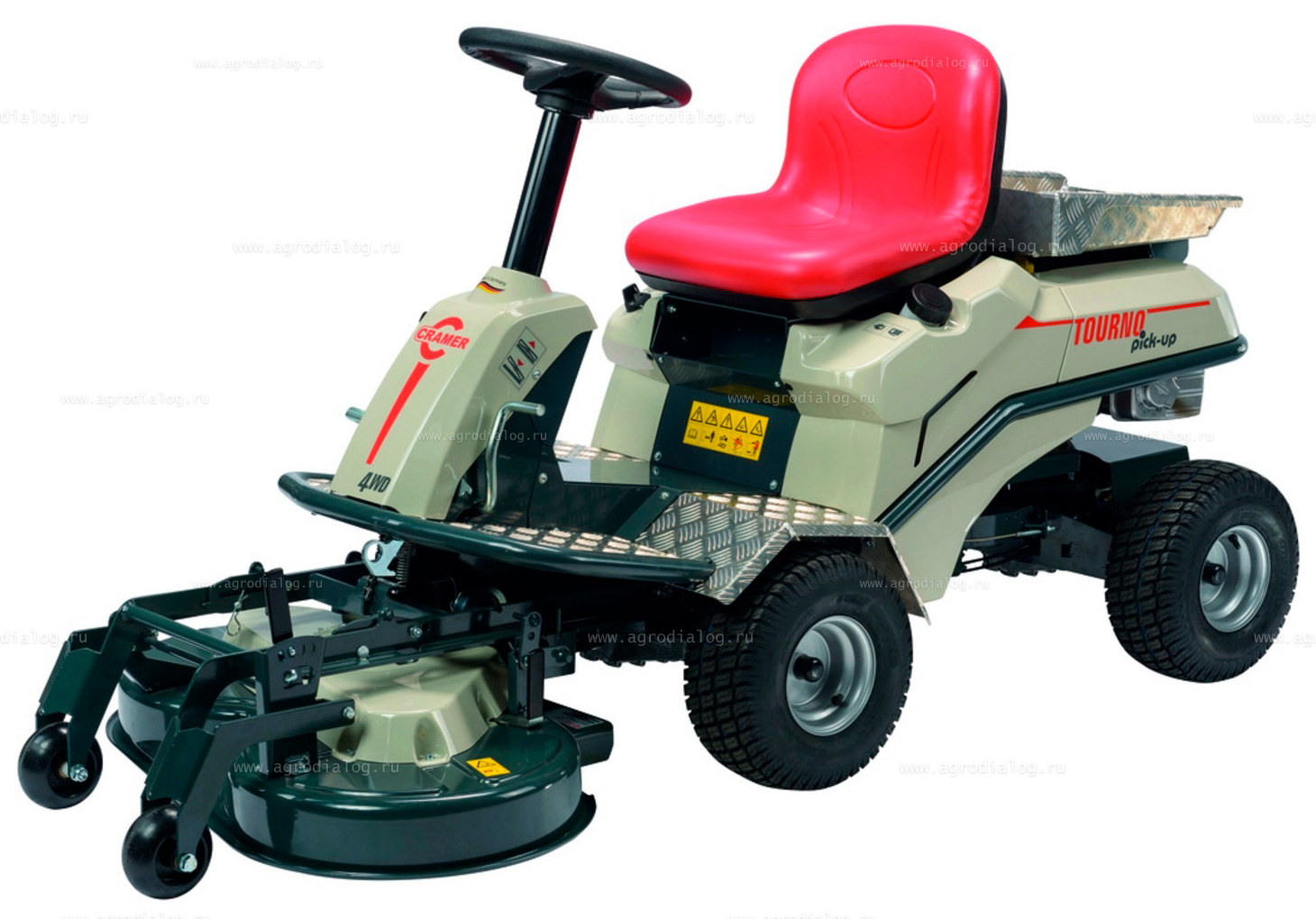 - Садовый райдер Cramer TOURNO pick-up имеет уникальную систему шарнирного рулевого управления, которая обеспечивает движение задней части райдера точно по колее передних колес. Удобство конструкции особенно очевидно, когда производится кошение территорий с декоративными элементами, деревьями, клумбами, кустарниками или другими препятствиями.