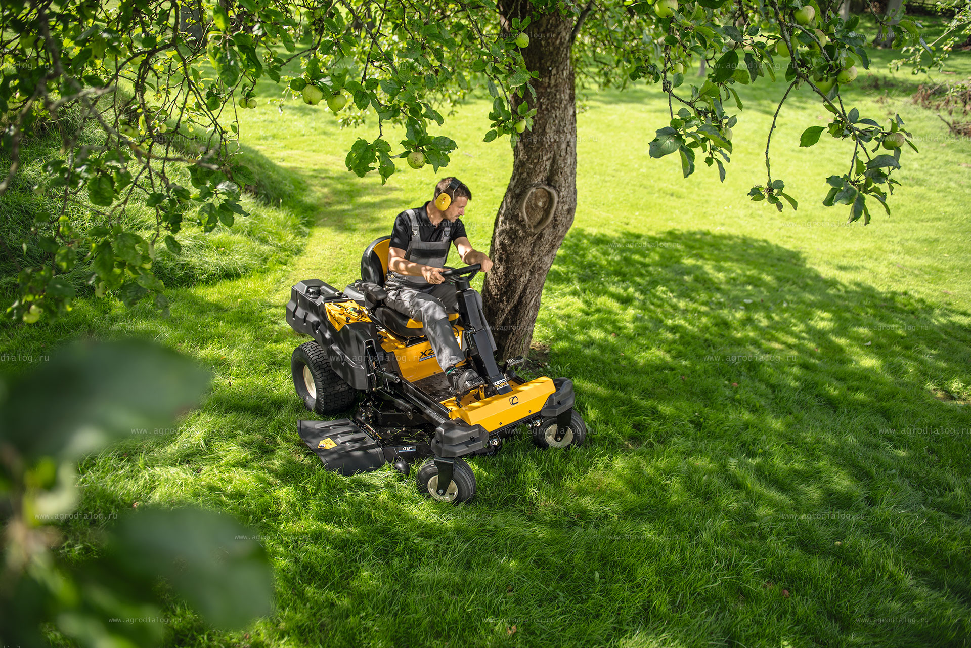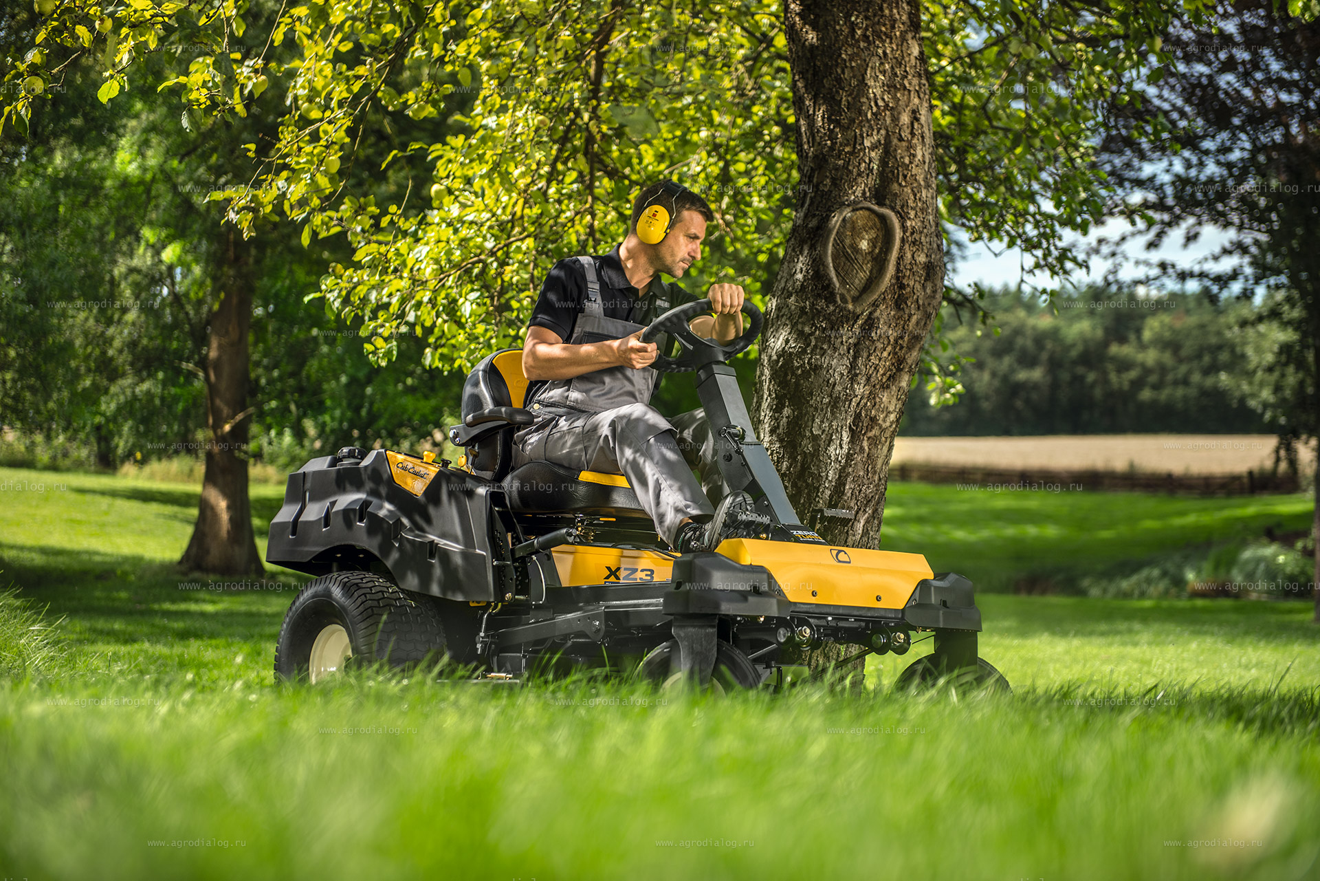 - Садовый райдер Cub Cadet XZ3 122 имеет двойную гидростатическую трансмиссию с независимым приводом на каждое колесо, что позволяет разворачиваться на месте, не повреждая поверхности газона.