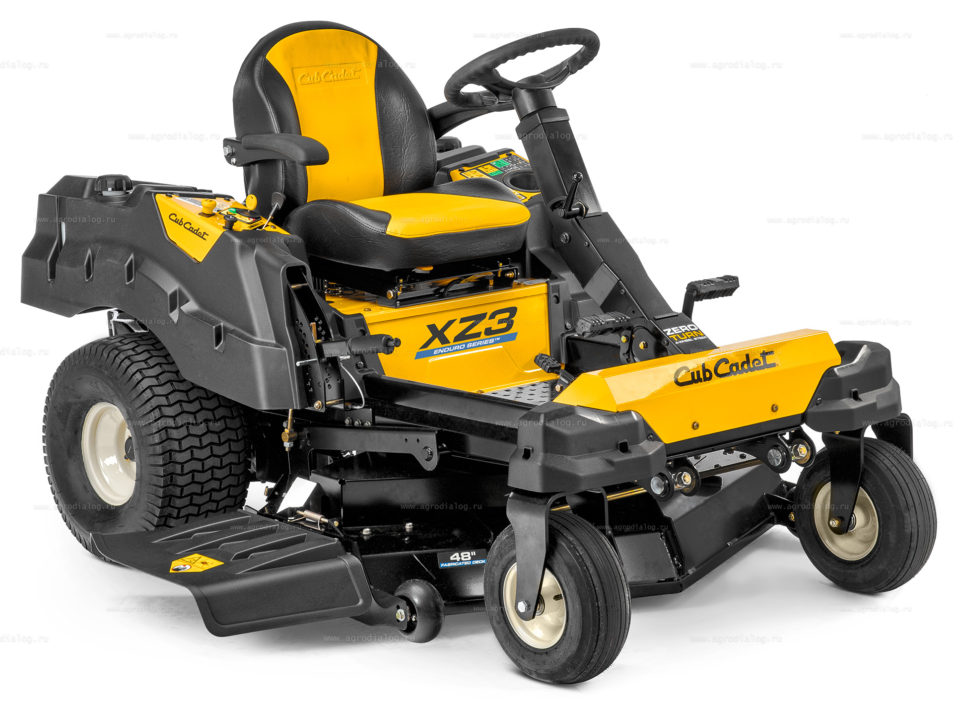 - Садовый райдер Cub Cadet XZ3 122 оборудован датчиком безопасности под сиденьем. Если водитель покинет сиденье, двигатель и режущая дека автоматически выключатся.