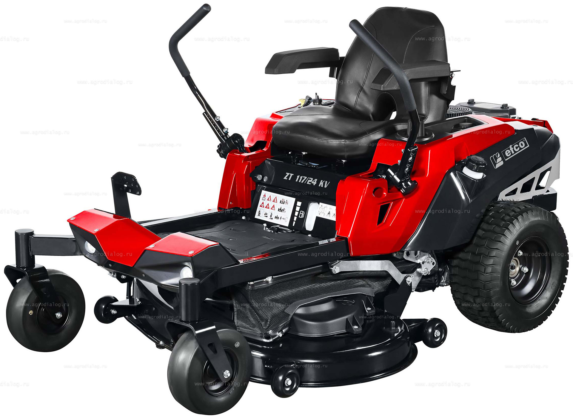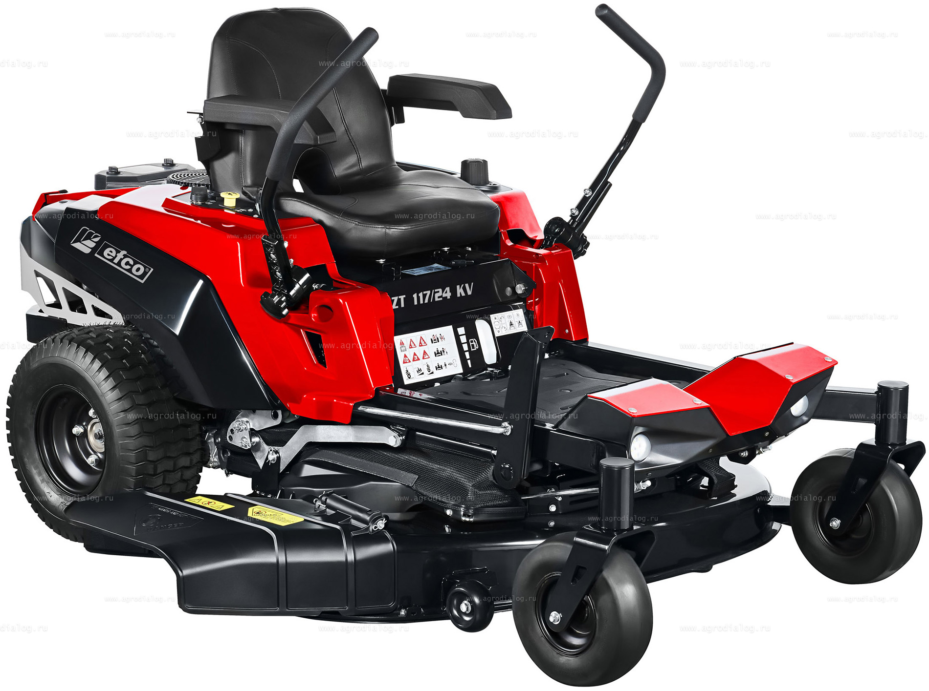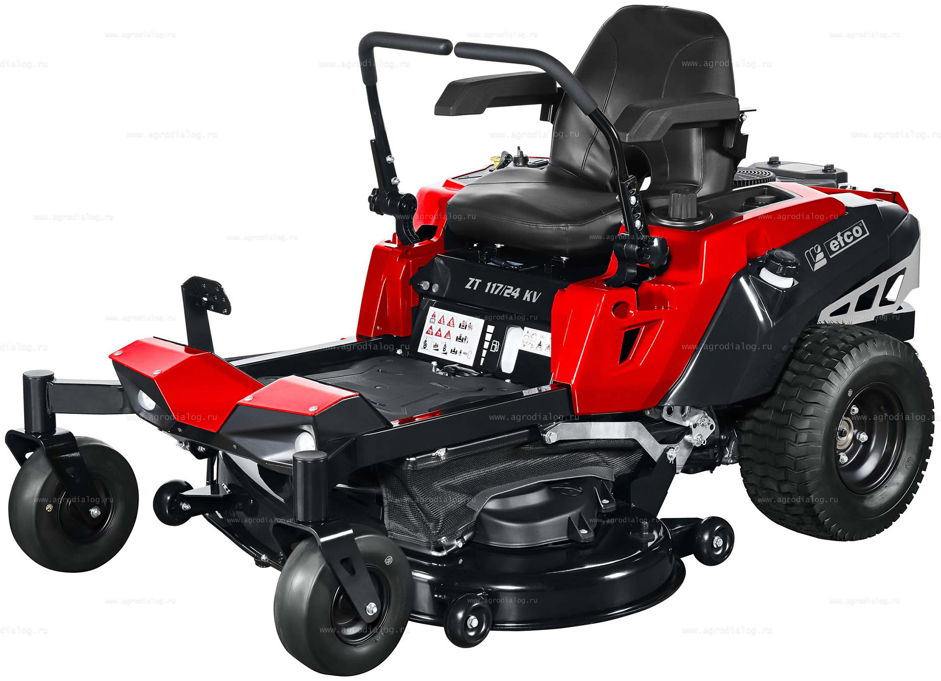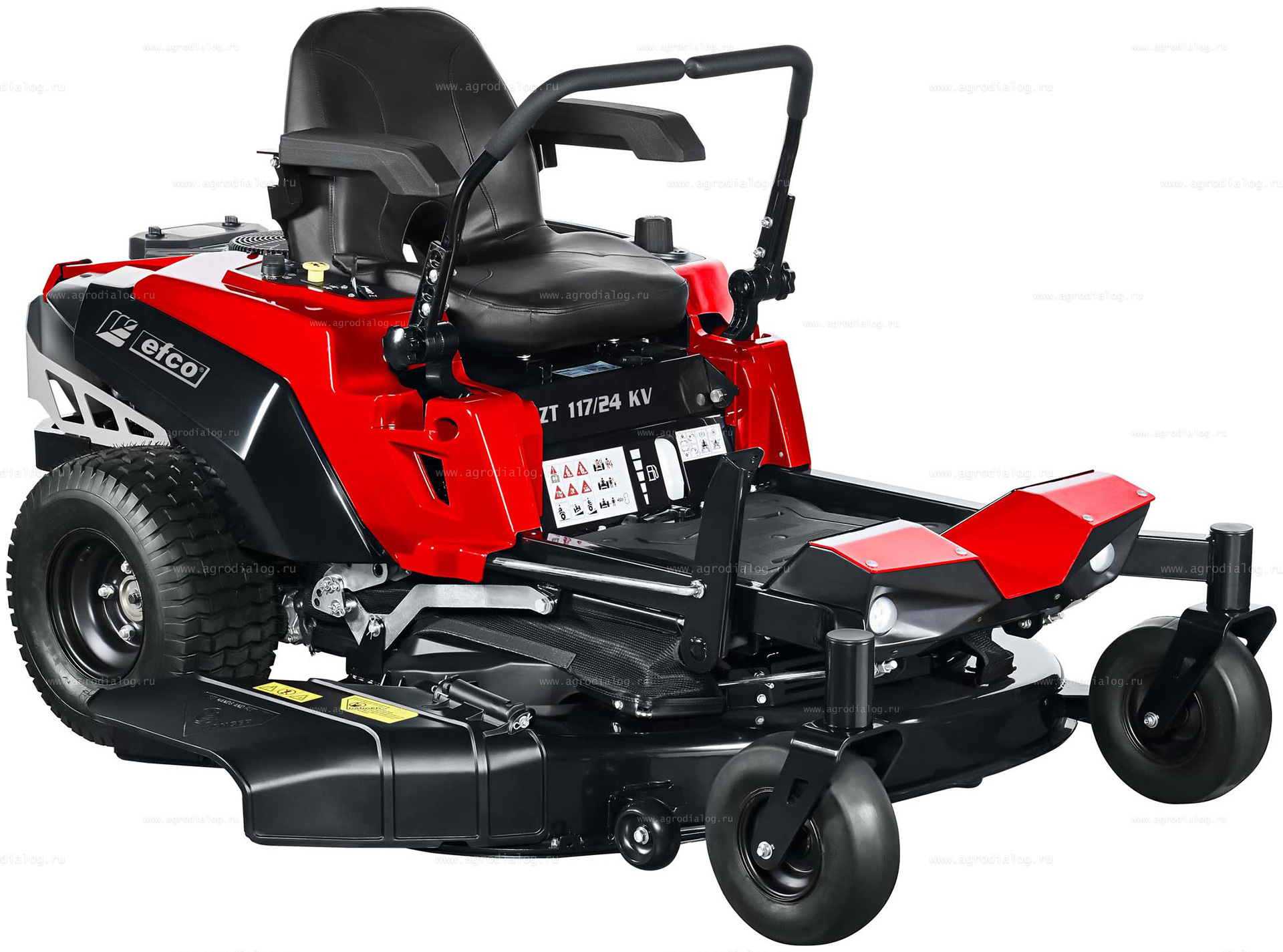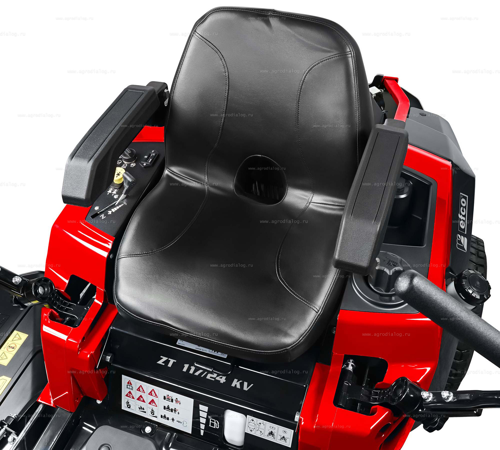 - Садовый райдер Efco ZT 117/24 KV оборудован датчиком безопасности под сиденьем. Если водитель покинет сиденье, двигатель и режущая дека автоматически выключатся.