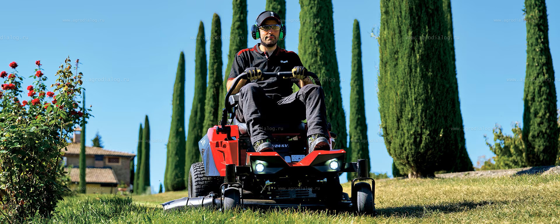 Садовый райдер Efco ZT 117/24 KV с нулевым радиусом разворота быстро и аккуратно косит траву на больших территориях с клумбами, цветами, деревьями и другими объектами ландшафтного дизайна.