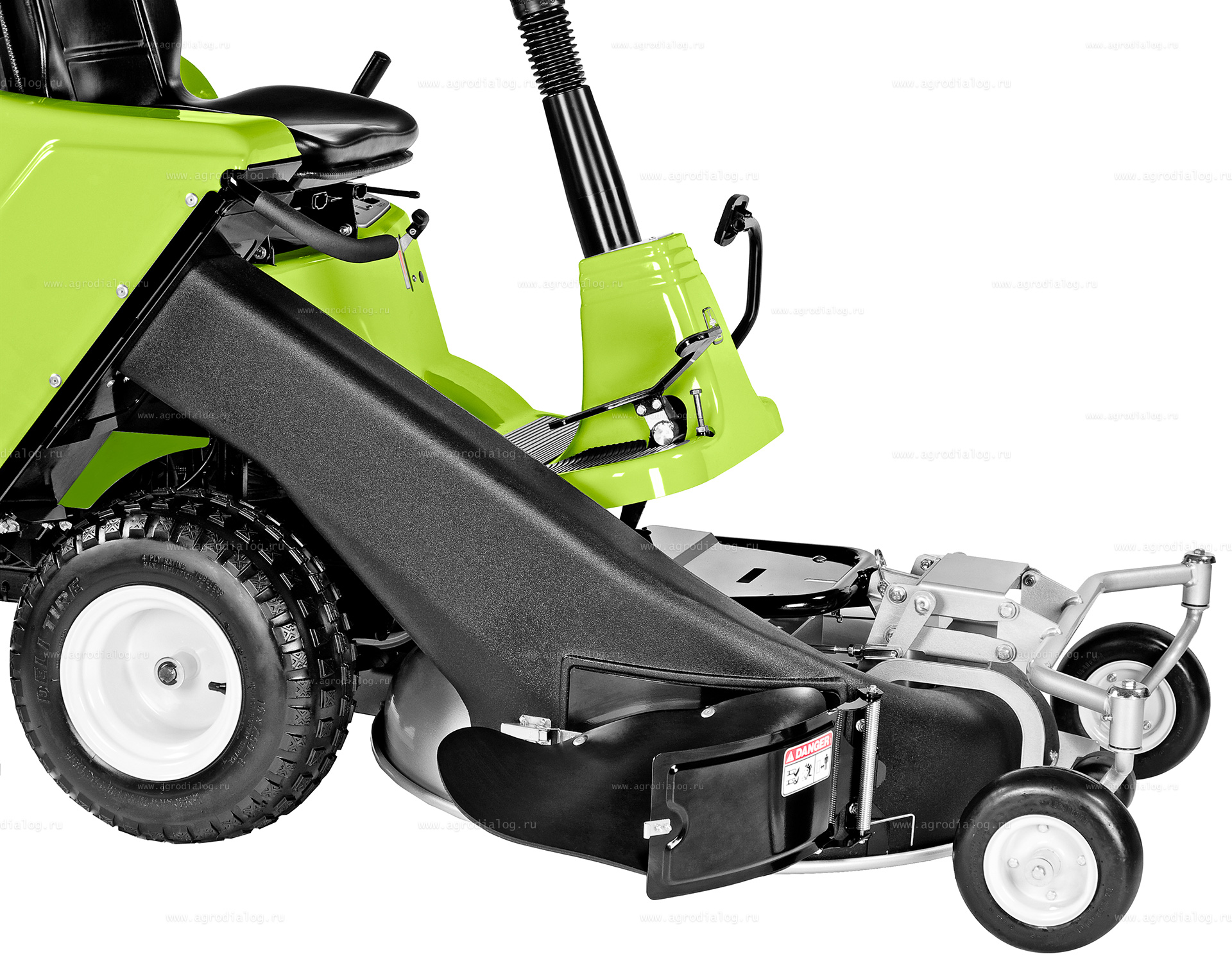 - Ширина скашивания 80 см, высота меняется от 3 до 9 см, настройка выполняется с помощью 7-позиционного рычага, который находится сбоку от сидения оператора.