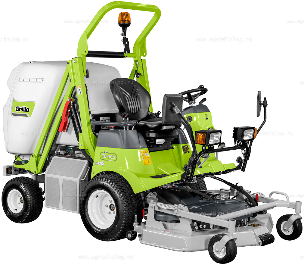 - Садовый райдер Grillo FD 900 4WD с передней декой скашивает траву безукоризненно ровно, не приминая ее колесами перед скашиванием, сохраняя великолепную обзорность участка.
