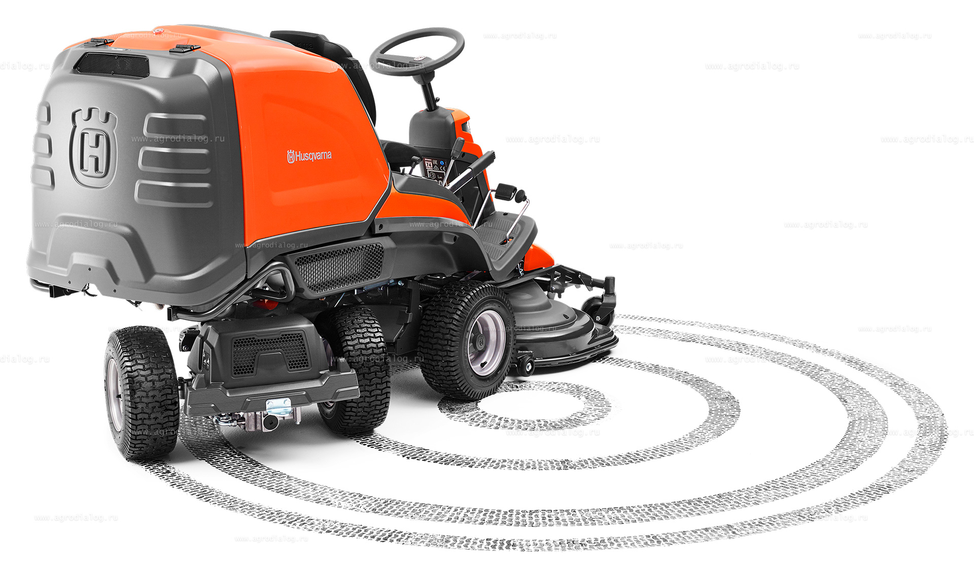 - Садовый райдер Husqvarna RC320Ts AWD имеет уникальную систему шарнирного рулевого управления, которая обеспечивает движение задней части райдера точно по колее передних колес. Удобство конструкции особенно очевидно, когда косишь газон в парке, где приходится постоянно объезжать деревья, клумбы и другие препятствия. Таким образом обеспечивается превосходная маневренность, и при полном развороте нескошенным остается участок минимального диаметра.
