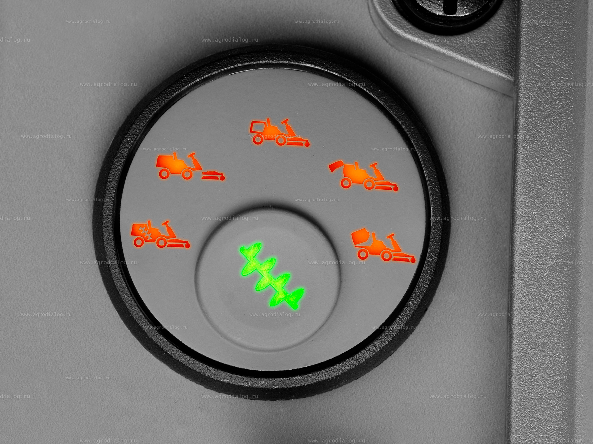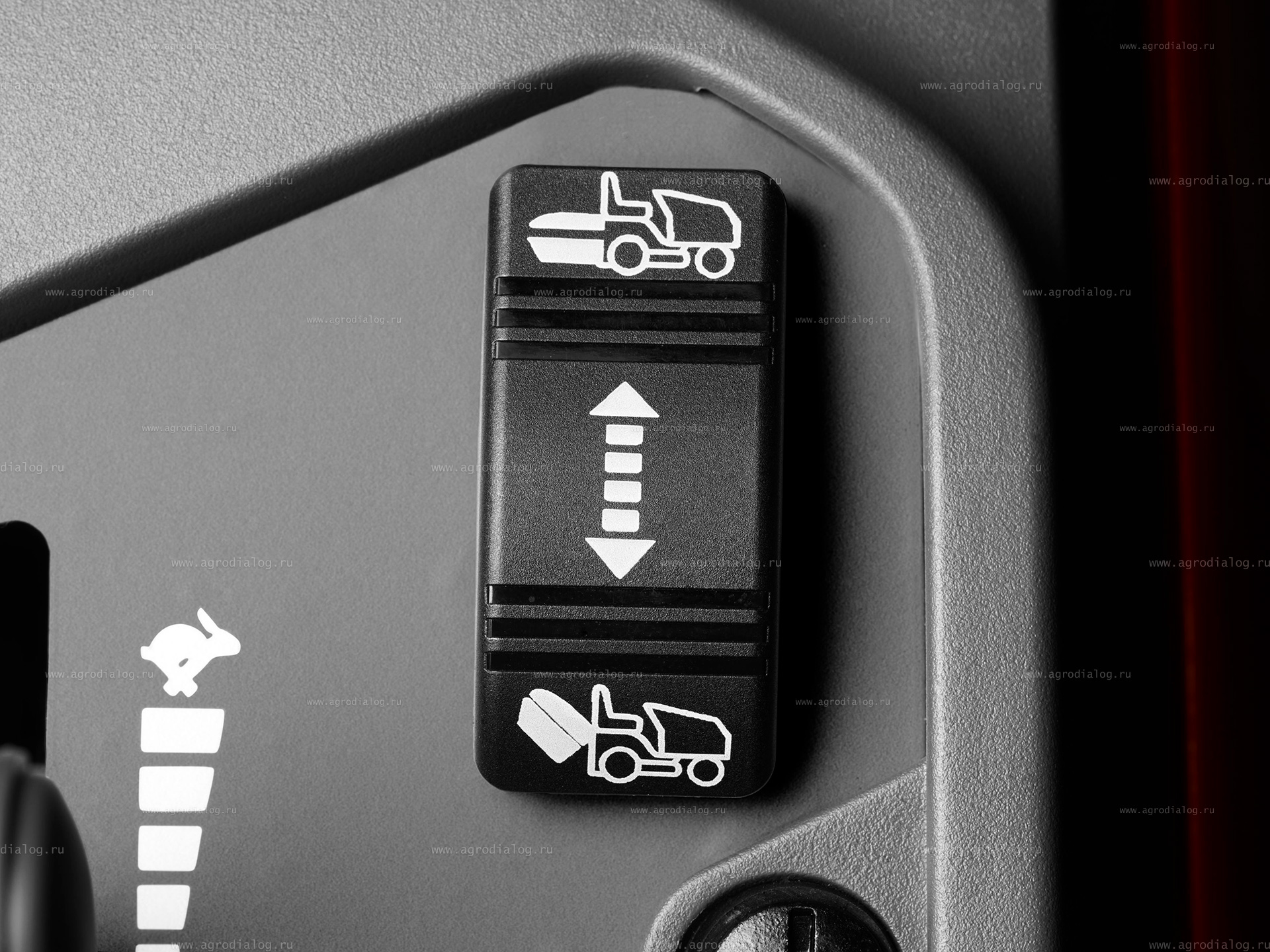 - Чтобы перейти от сбора травы в травосборник к мульчированию необходимо нажать кнопку на панели управления.