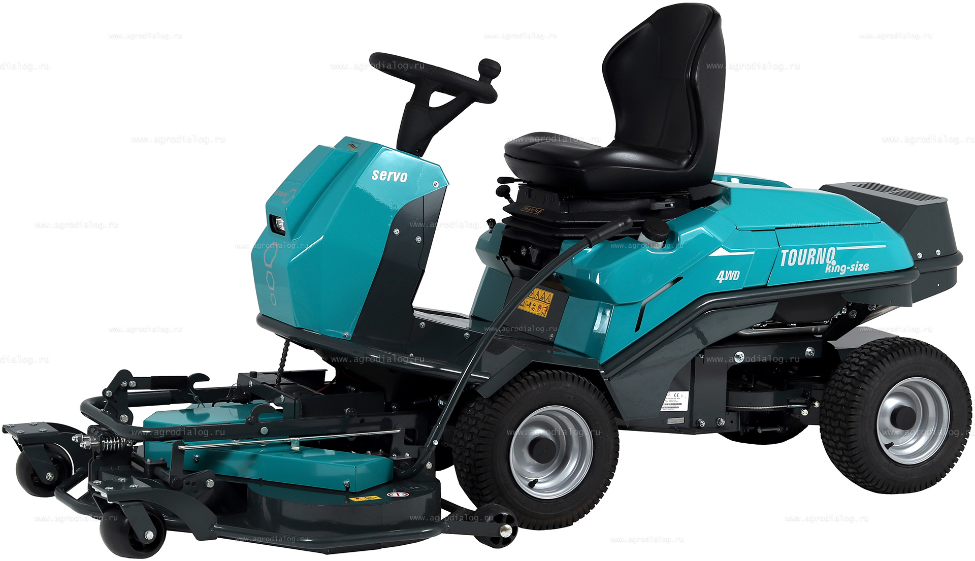 - Садовый райдер Remarc Tourno King Size 4WD Servo обладает низким центром тяжести, что создает превосходное сцепление с поверхностью и позволяет производить кошение территорий с уклоном до 15 градусов.