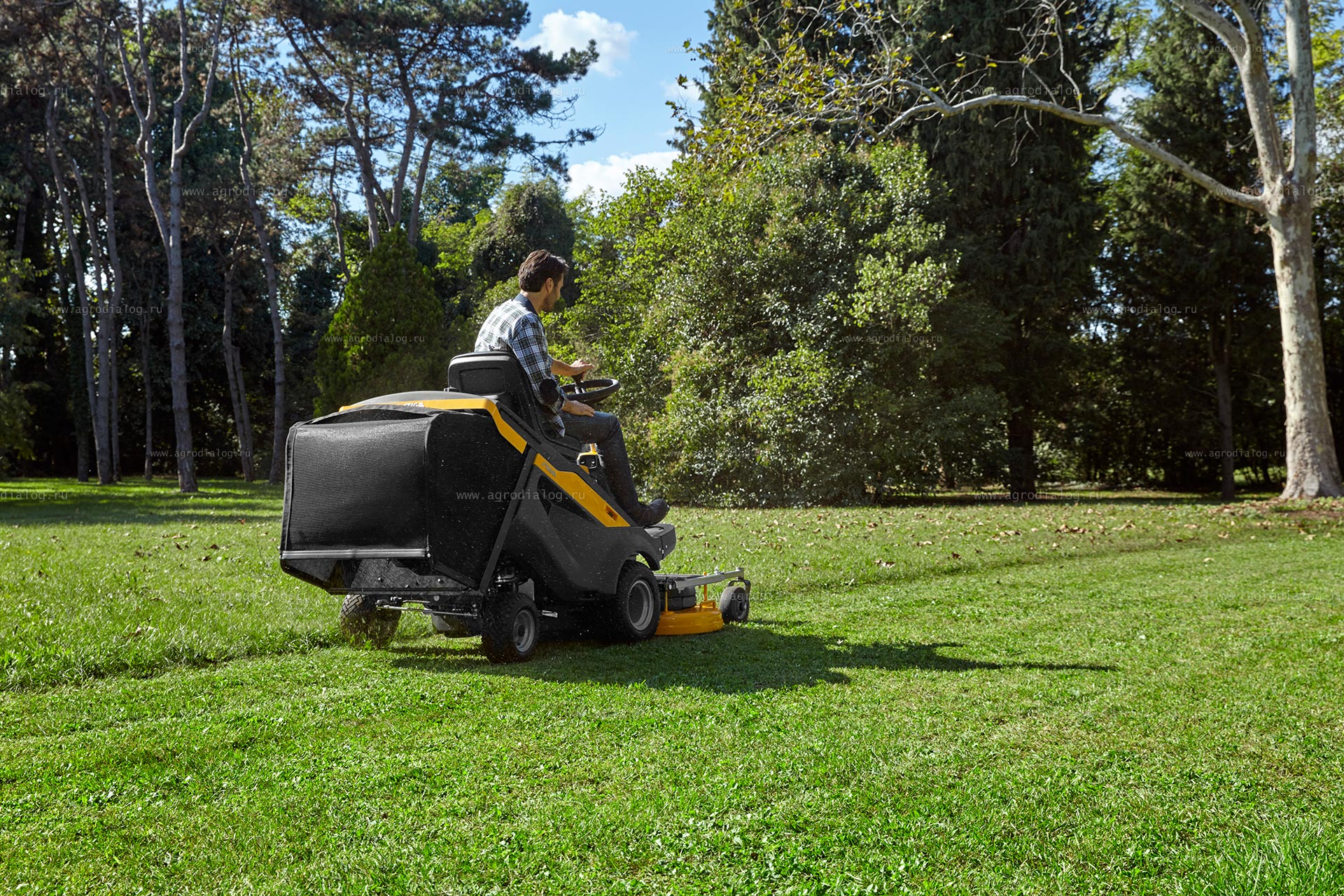 - Садовый райдер Stiga MPV 320 W с передней декой скашивает траву безукоризненно ровно, не приминая ее колесами перед скашиванием, сохраняя великолепную обзорность участка. Ширина скашивания 112 см, высота меняется от 2 до 7 см, настройка выполняется с помощью рычага, который находится сбоку от сидения оператора. Специальный профиль ножа обеспечивает оптимальный срез и сбор даже мокрой травы.