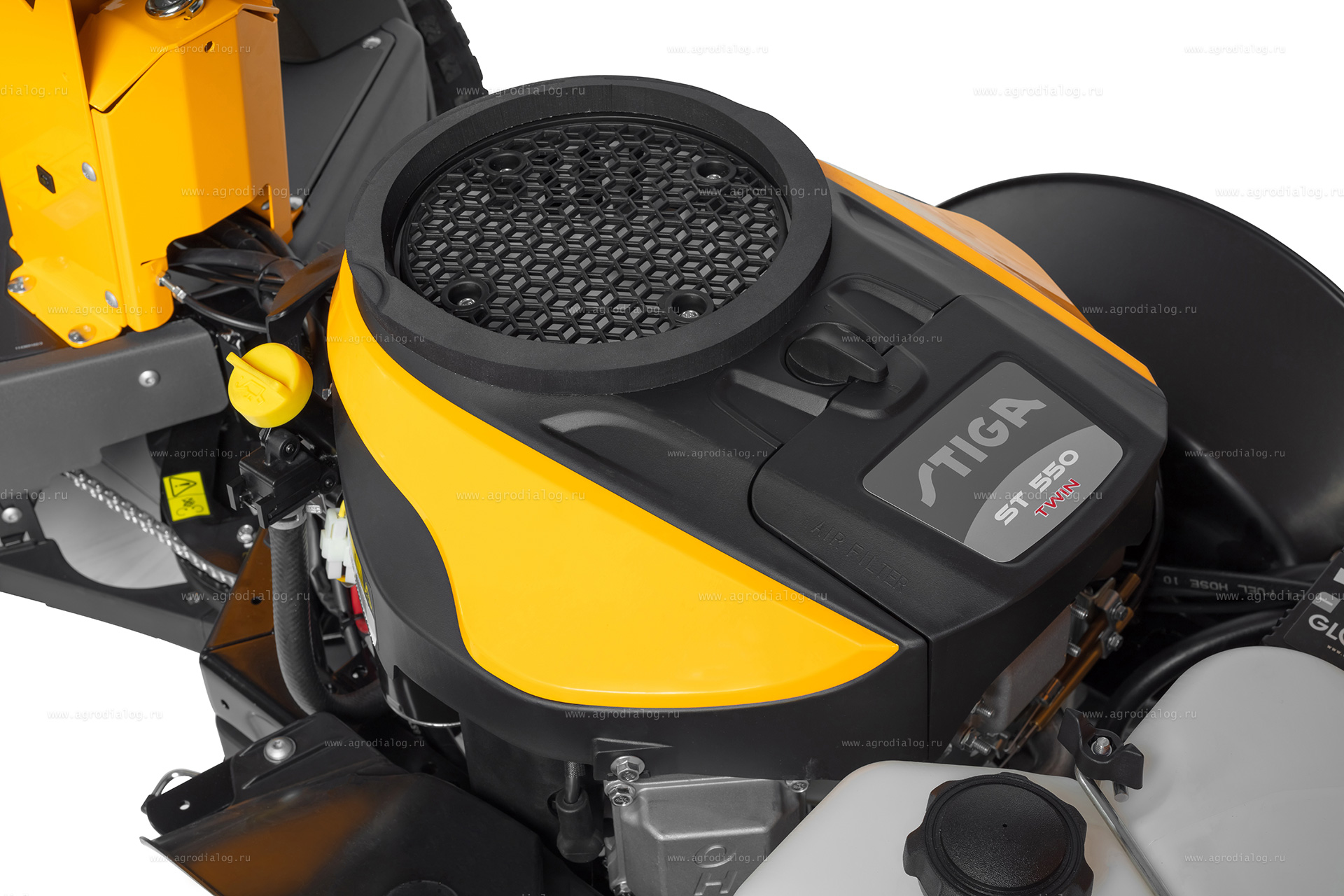 • Двухцилиндровый двигатель Stiga ST 550 V-Twin обеспечивает превосходное сочетание высокой производительности, низкого потребления топлива и низких выбросов.