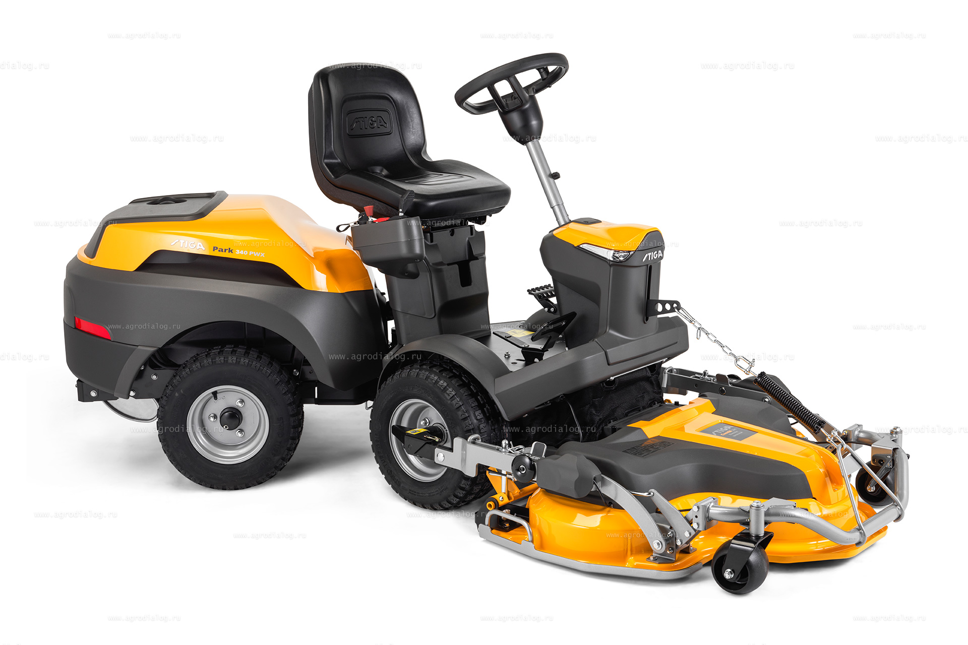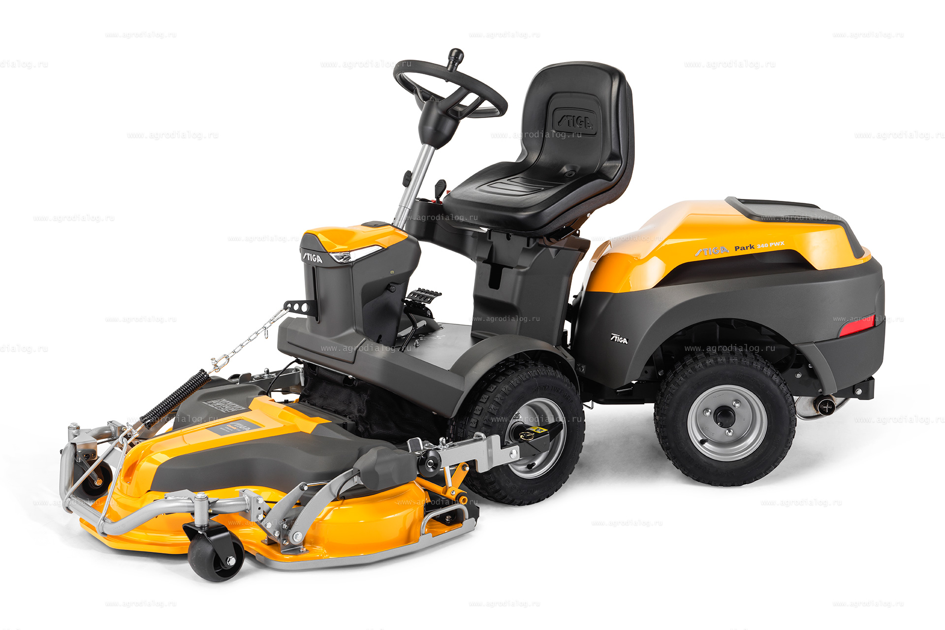 - Садовый райдер Stiga Park 340 PWX имеет уникальную систему шарнирного рулевого управления, которая обеспечивает движение задней части райдера точно по колее передних колес. Удобство конструкции особенно очевидно, когда косишь газон в парке, где приходится постоянно объезжать деревья, клумбы и другие препятствия. Таким образом обеспечивается превосходная маневренность, и при полном развороте нескошенным остается участок минимального диаметра.