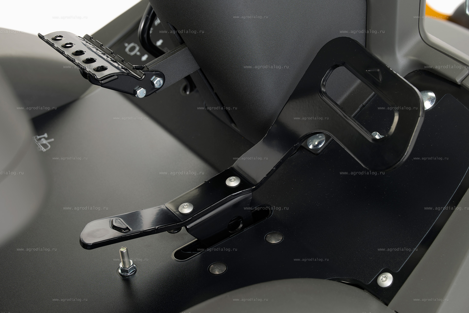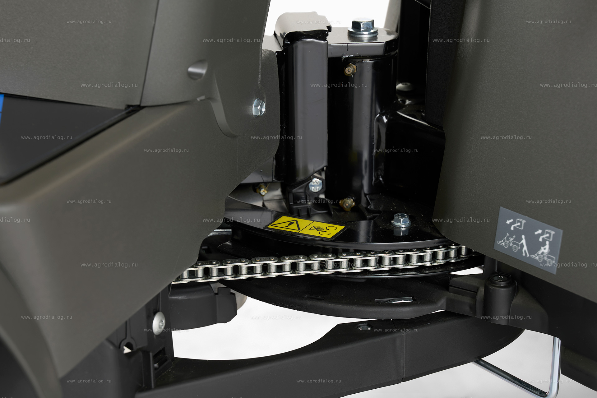 - Надежная гидростатическая трансмиссия обеспечивает плавное изменение скорости и превосходный комфорт во время работы. С помощью педали осуществляется бесступенчатая регулировка как скорости, так и движения вперед и назад.