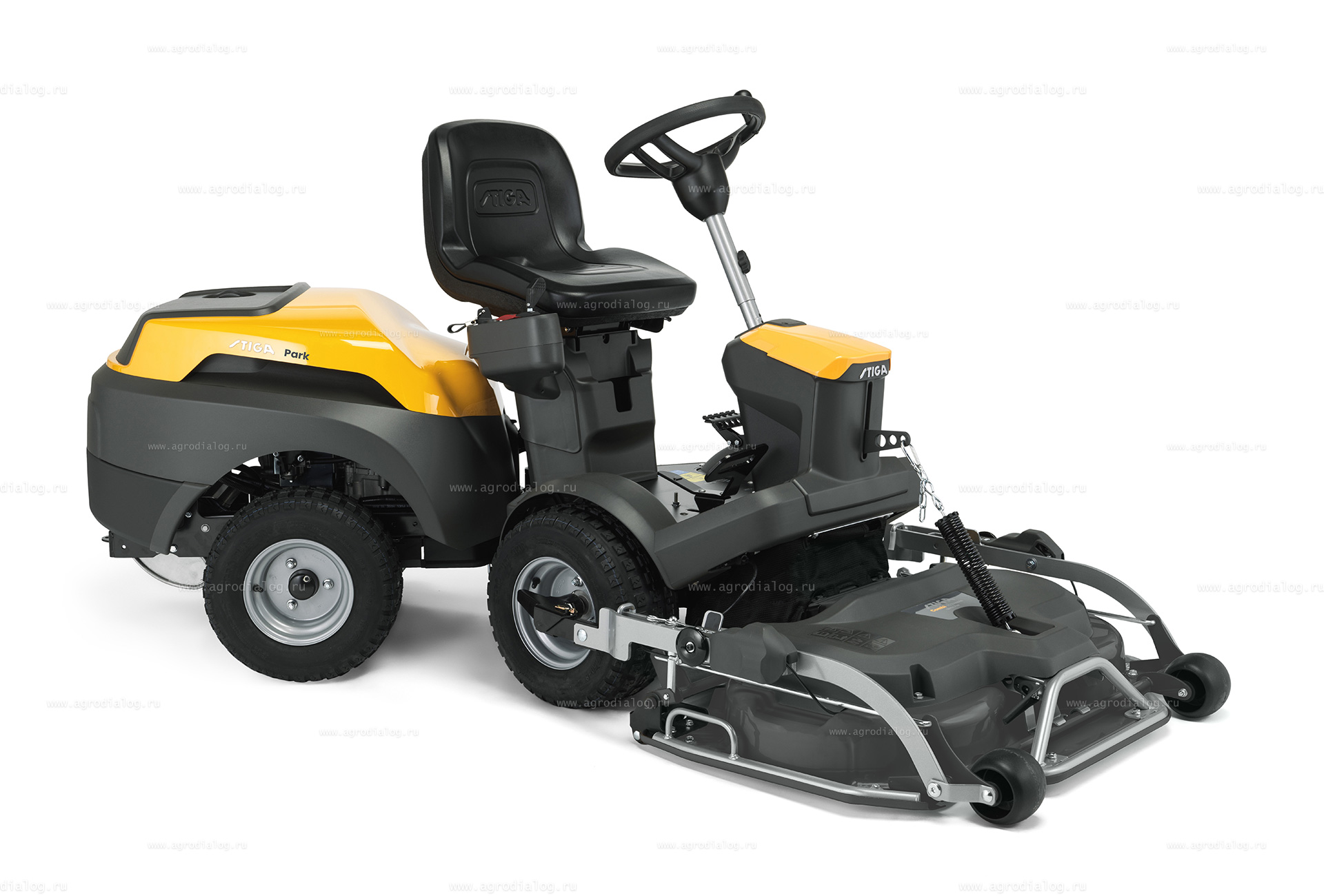 - Садовый райдер Stiga Park 500 имеет уникальную систему шарнирного рулевого управления, которая обеспечивает движение задней части райдера точно по колее передних колес. Удобство конструкции особенно очевидно, когда производится кошение территорий с декоративными элементами, деревьями, клумбами, кустарниками или другими препятствиями.