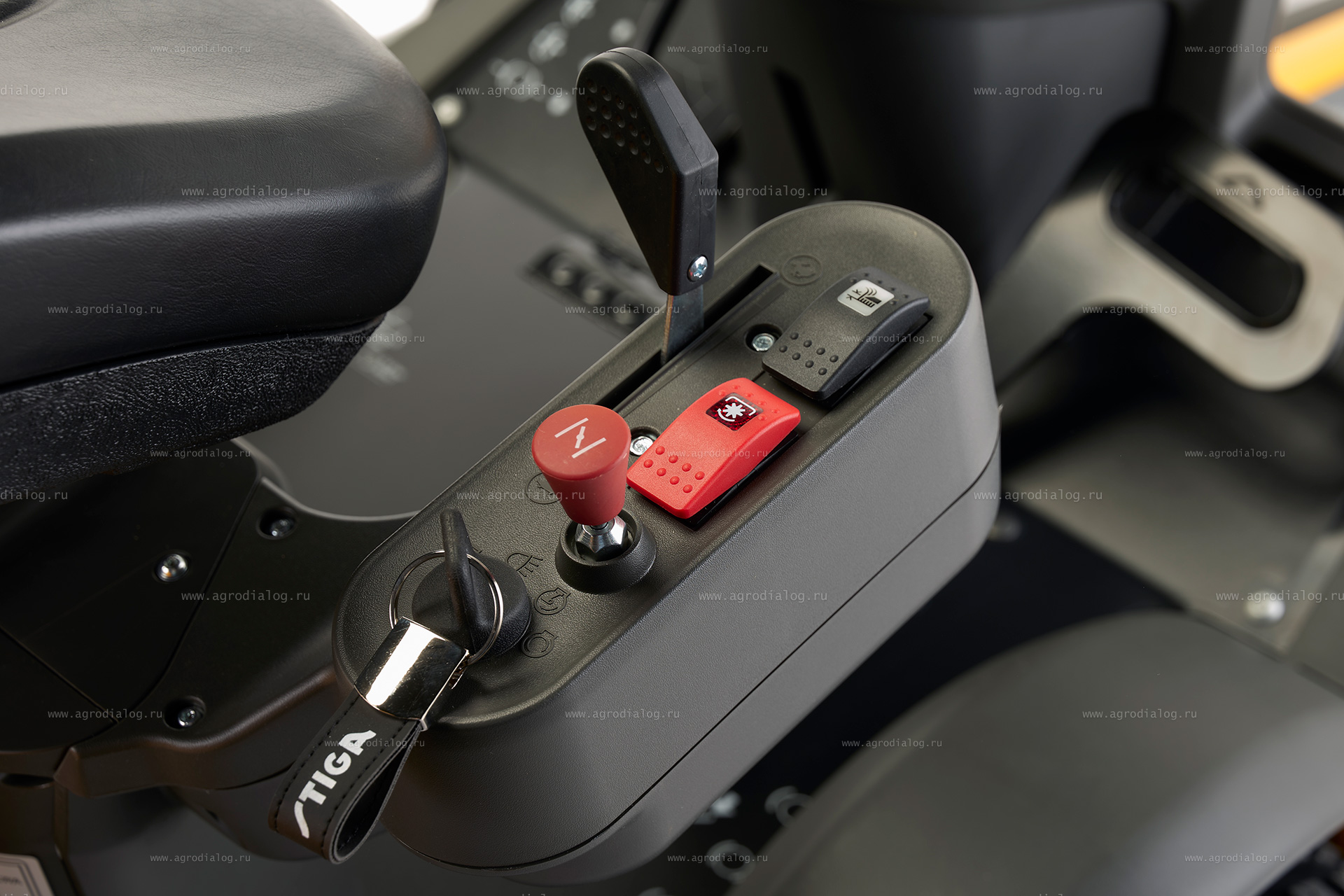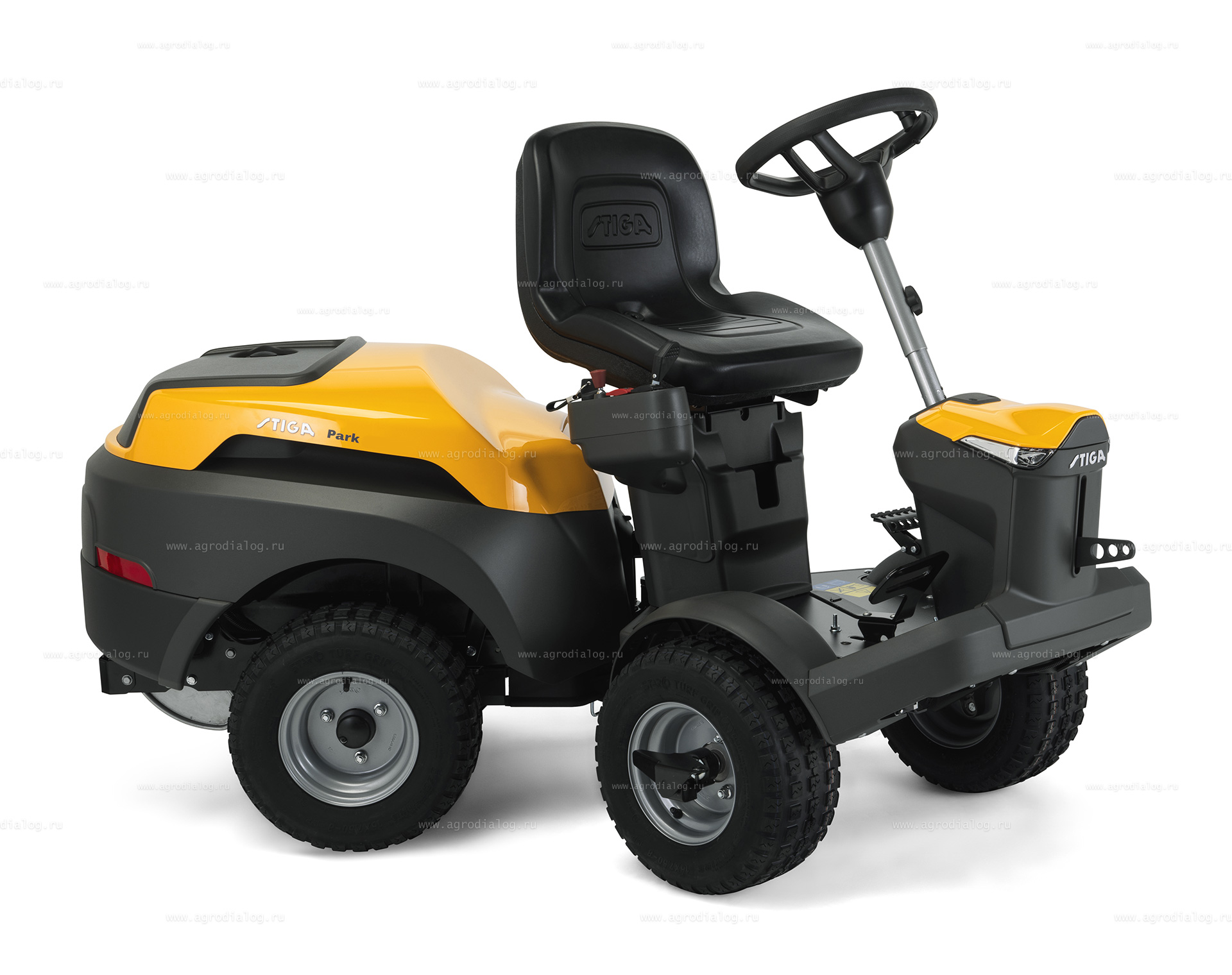 • Садовый райдер Stiga Park 500 W имеет уникальную систему шарнирного рулевого управления, которая обеспечивает движение задней части райдера точно по колее передних колес. Удобство конструкции особенно очевидно, когда производится кошение территорий с декоративными элементами, деревьями, клумбами, кустарниками или другими препятствиями.