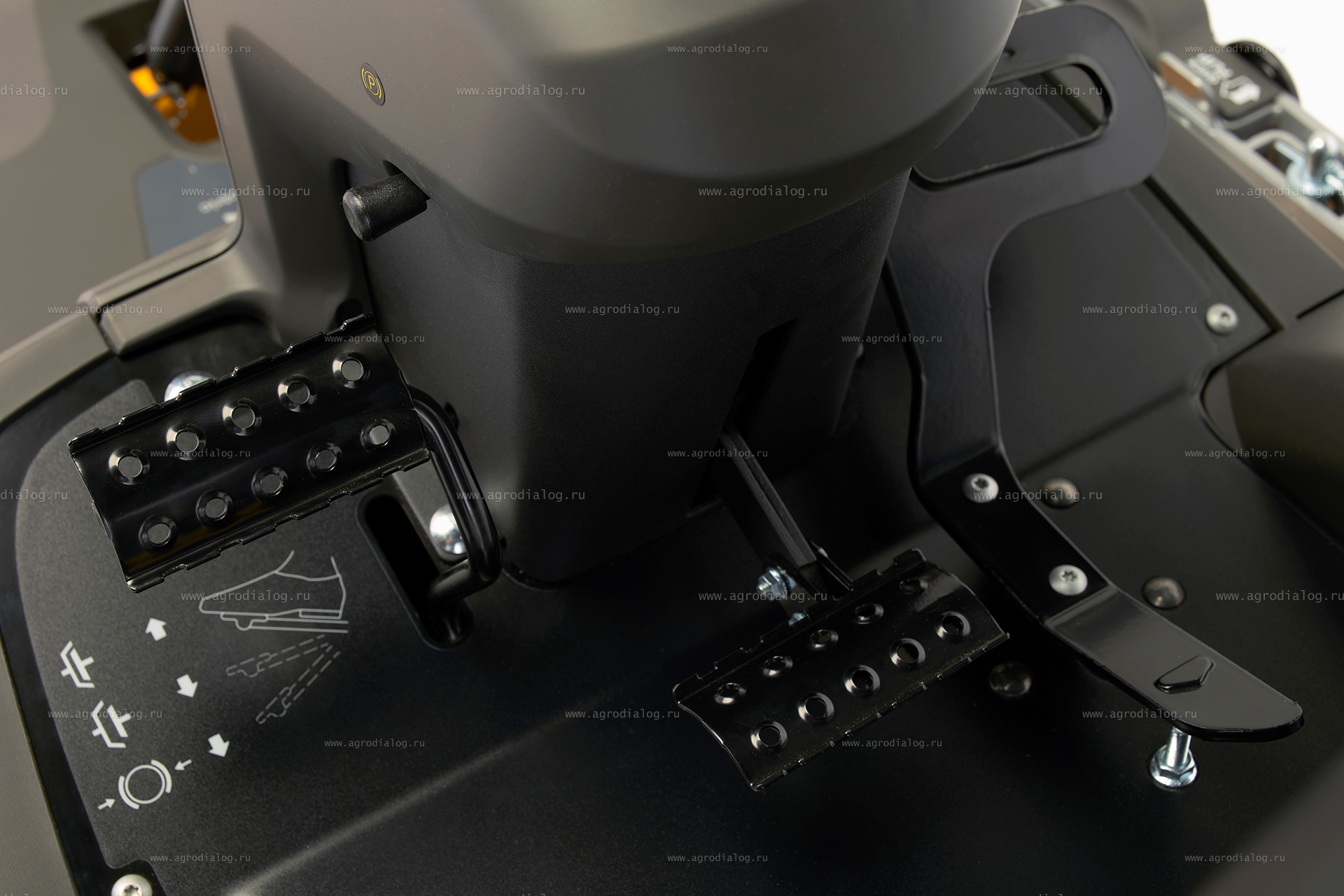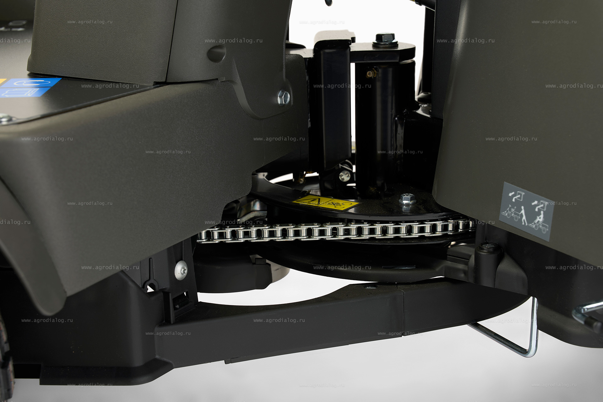 • Надежная гидростатическая трансмиссия обеспечивает плавное изменение скорости и превосходный комфорт во время работы. С помощью педали осуществляется бесступенчатая регулировка как скорости, так и движения вперед и назад.