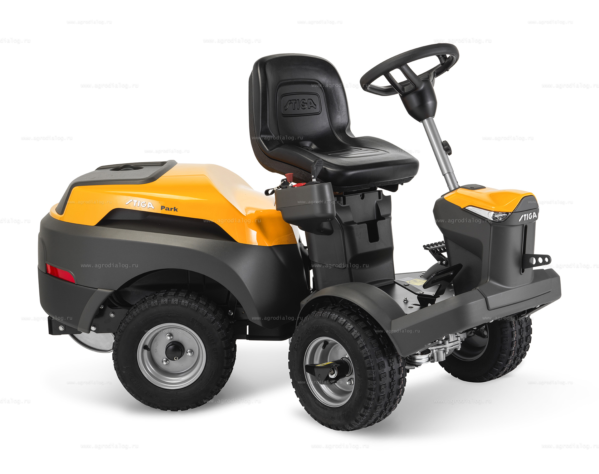 - Садовый райдер Stiga Park 500 WX имеет уникальную систему шарнирного рулевого управления, которая обеспечивает движение задней части райдера точно по колее передних колес. Удобство конструкции особенно очевидно, когда производится кошение территорий с декоративными элементами, деревьями, клумбами, кустарниками или другими препятствиями.