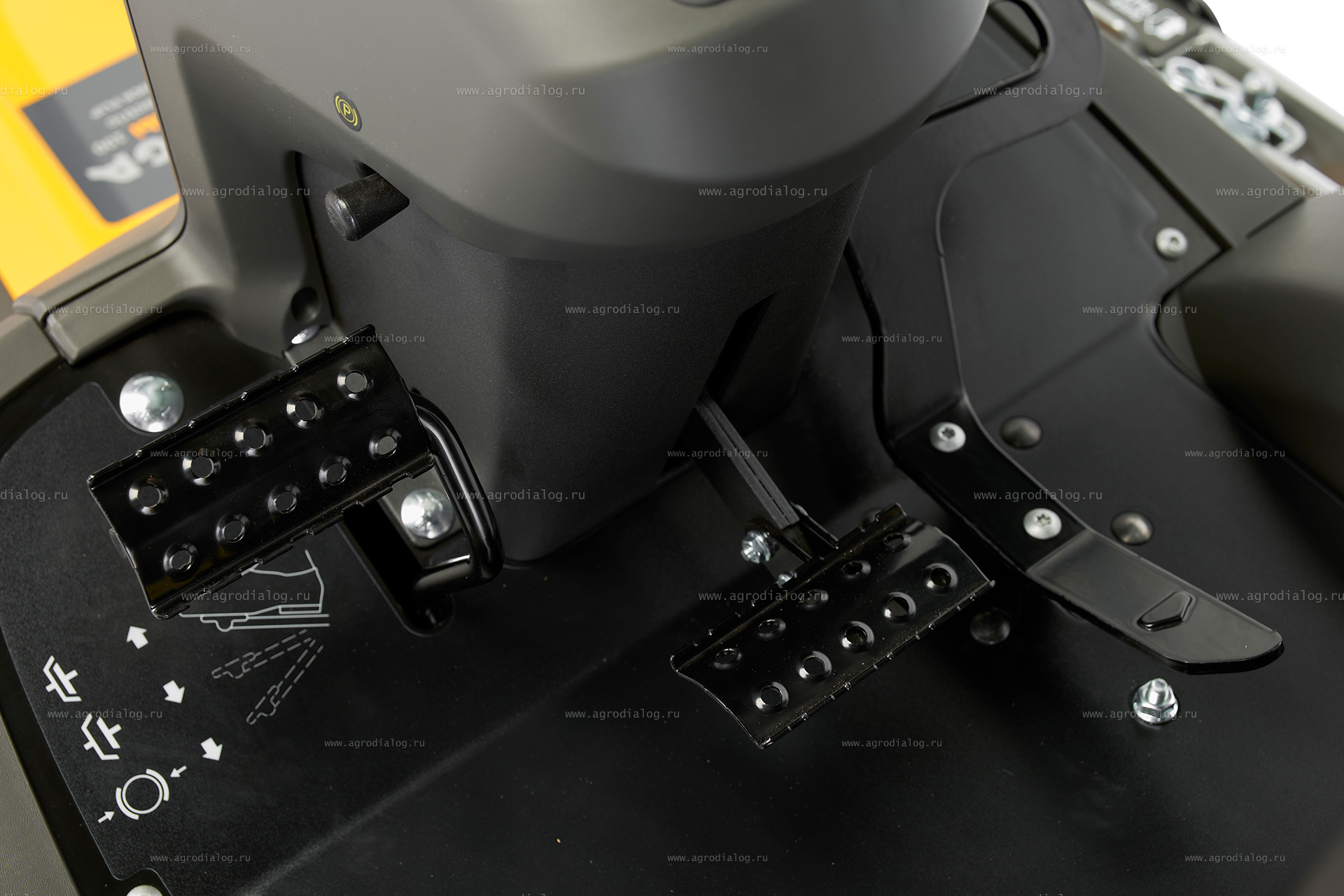 - Надежная гидростатическая трансмиссия обеспечивает плавное изменение скорости и превосходный комфорт во время работы. С помощью педали осуществляется бесступенчатая регулировка как скорости, так и движения вперед и назад.