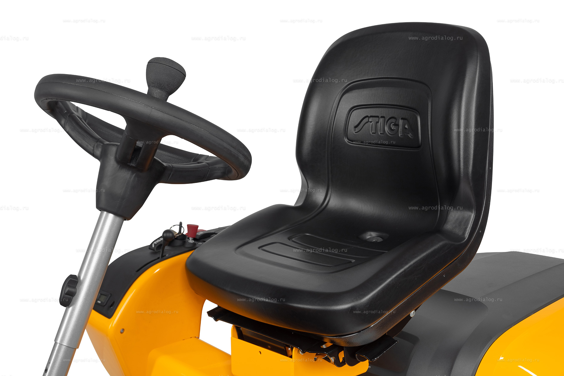 - Садовый райдер Stiga Park 720 PW оснащен гидростатической трансмиссией, что обеспечивает превосходный комфорт во время вождения. С помощью педали возможна бесступенчатая регулировка как скорости, так и движения вперед и назад.