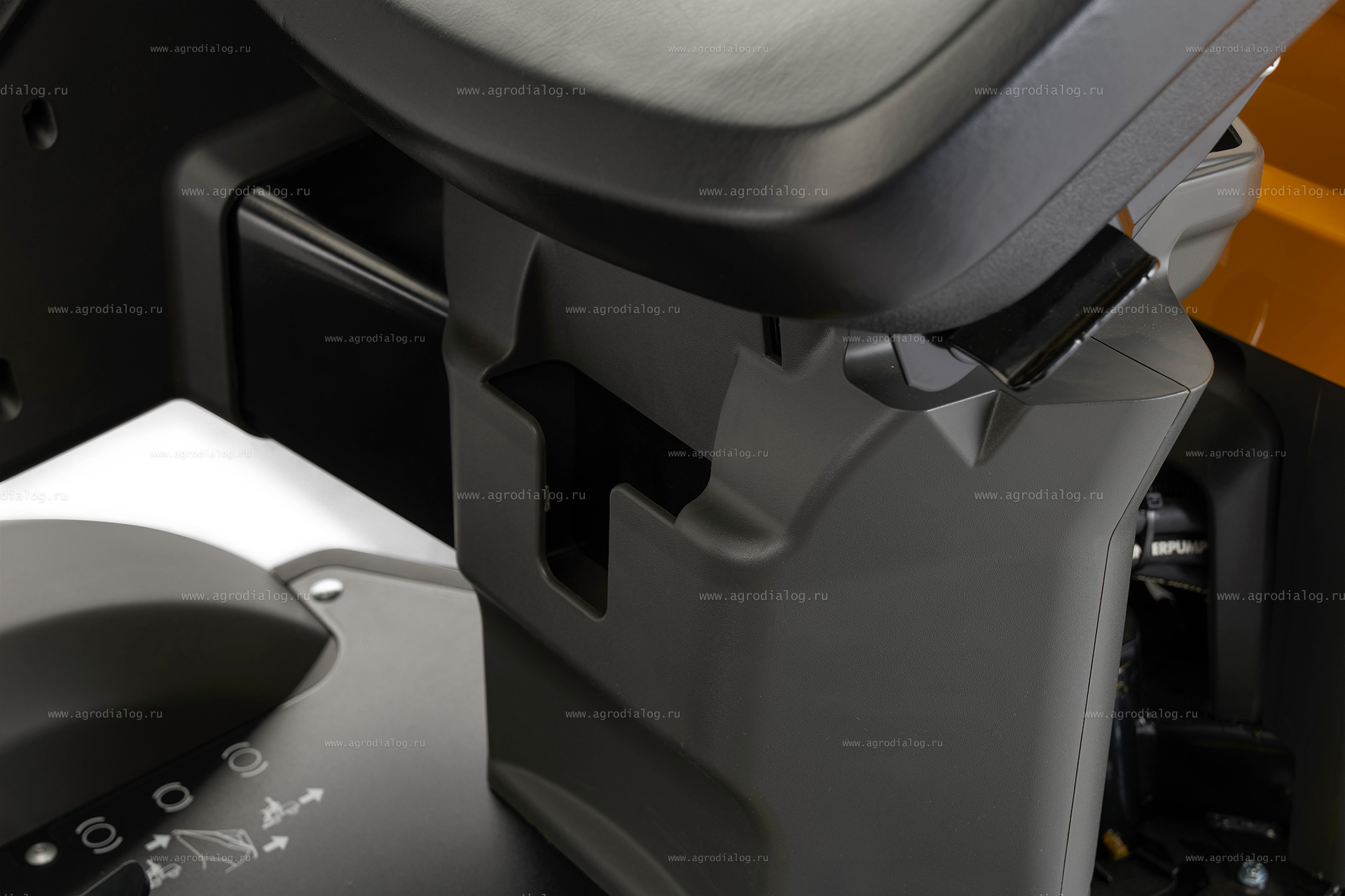 - Заднее расположение двигателя снижает шумность и обеспечивает более чистый воздух вокруг сиденья оператора.