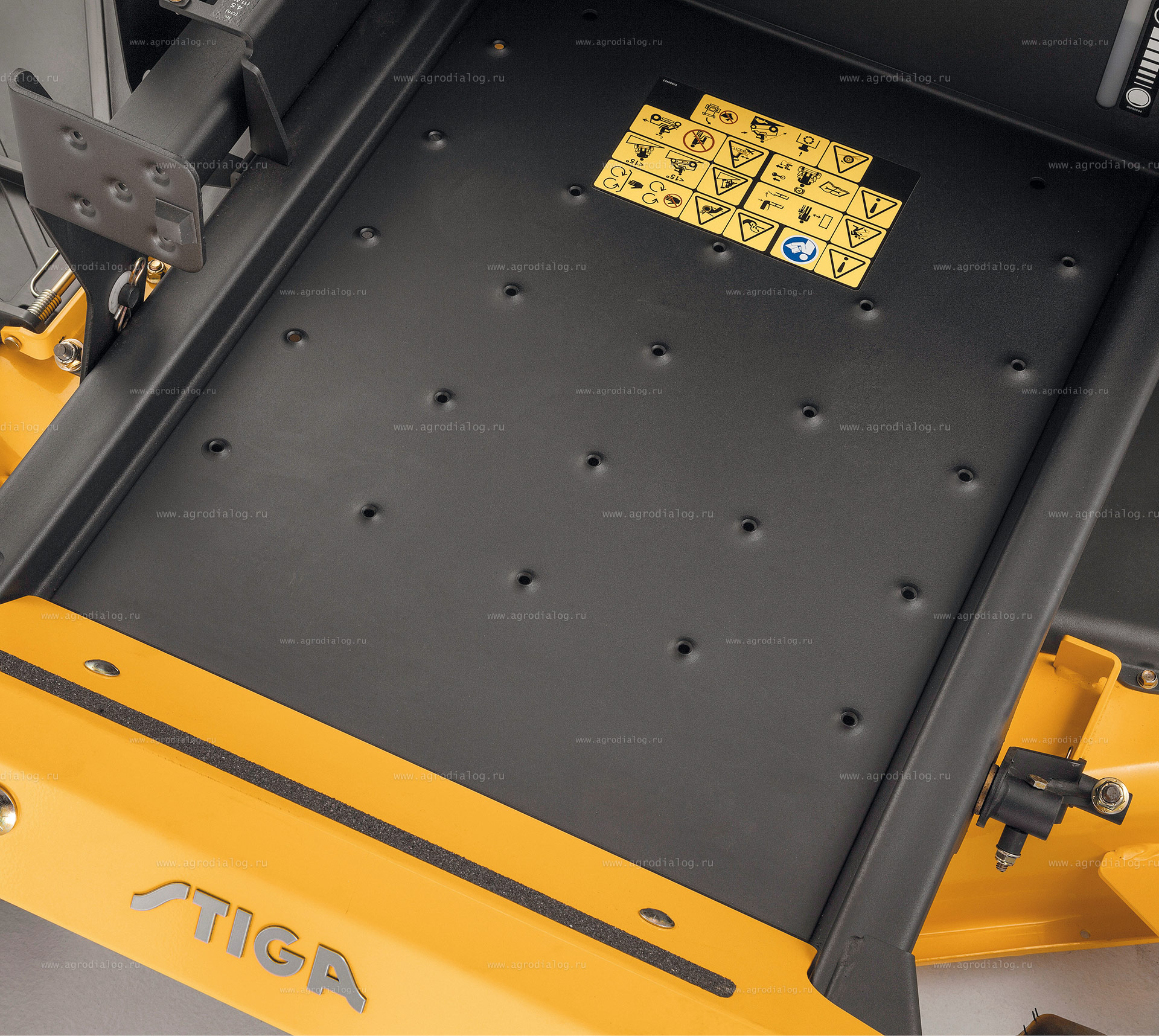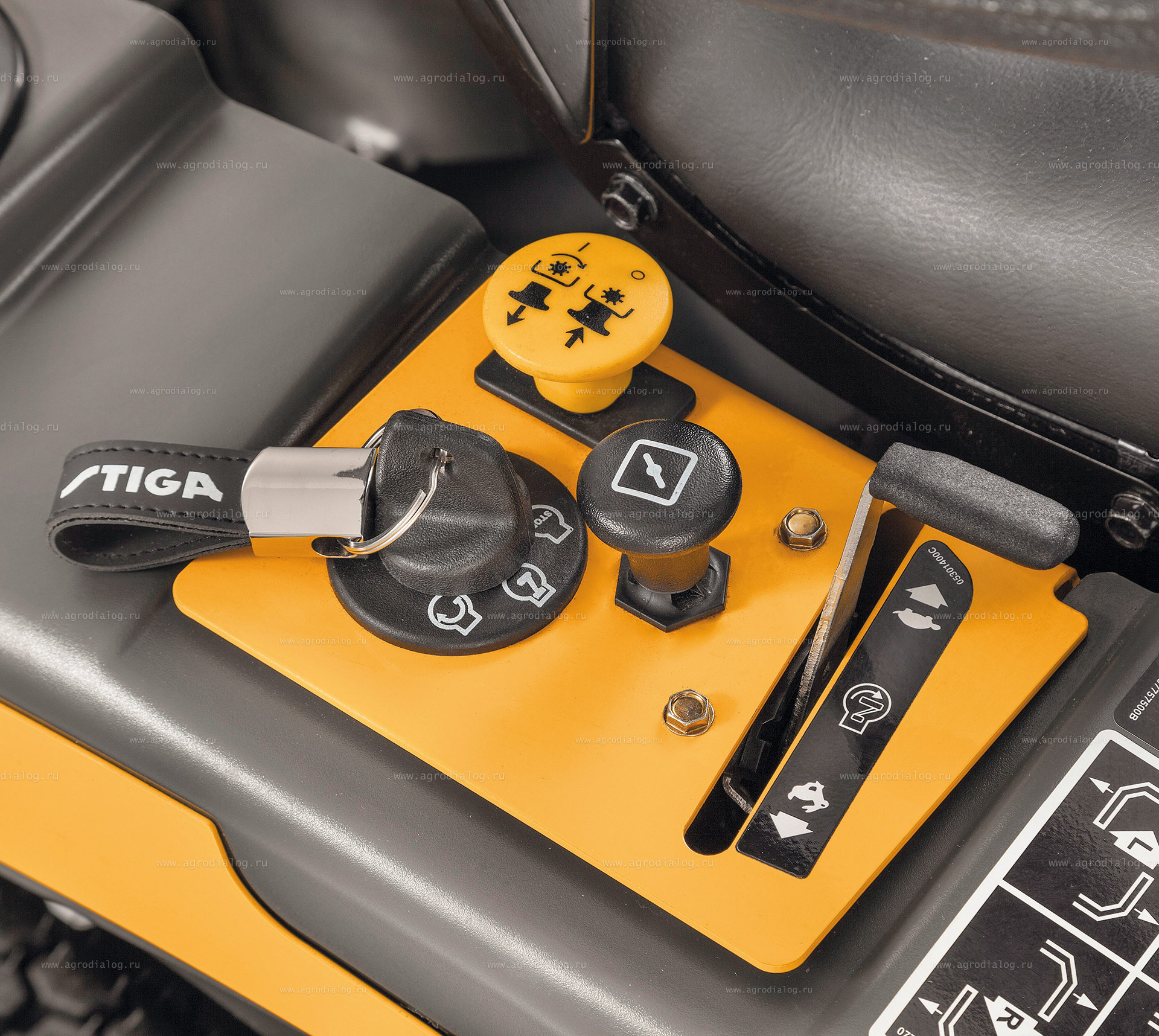 - Садовый райдер Stiga ZT 3107 T оборудован датчиком безопасности под сиденьем. Если водитель покинет сиденье, двигатель и режущая дека автоматически выключатся.