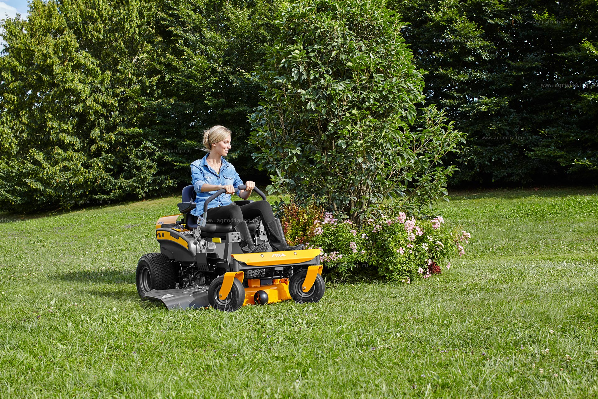 Садовый райдер Stiga ZT 3107 T с нулевым радиусом разворота быстро и аккуратно косит траву на больших территориях с клумбами, цветами, деревьями и другими объектами ландшафтного дизайна.