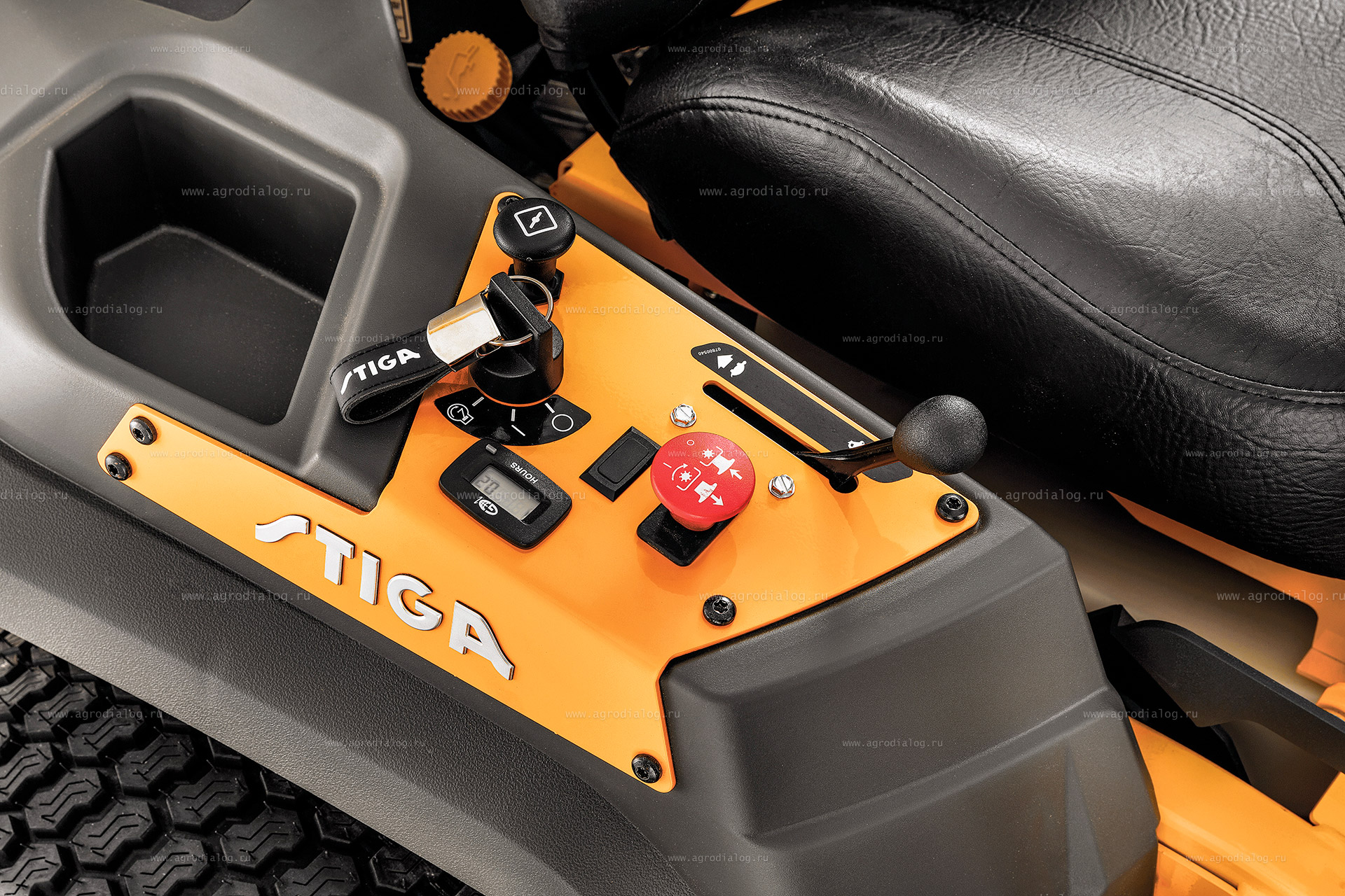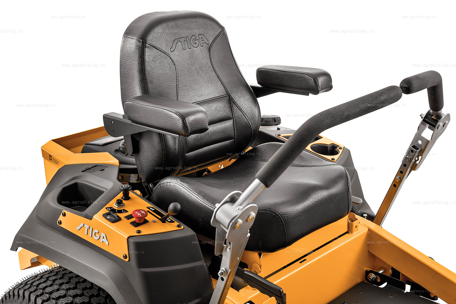 - Садовый райдер Stiga ZT 7132 T оборудован датчиком безопасности под сиденьем. Если водитель покинет сиденье, двигатель и режущая дека автоматически выключатся.