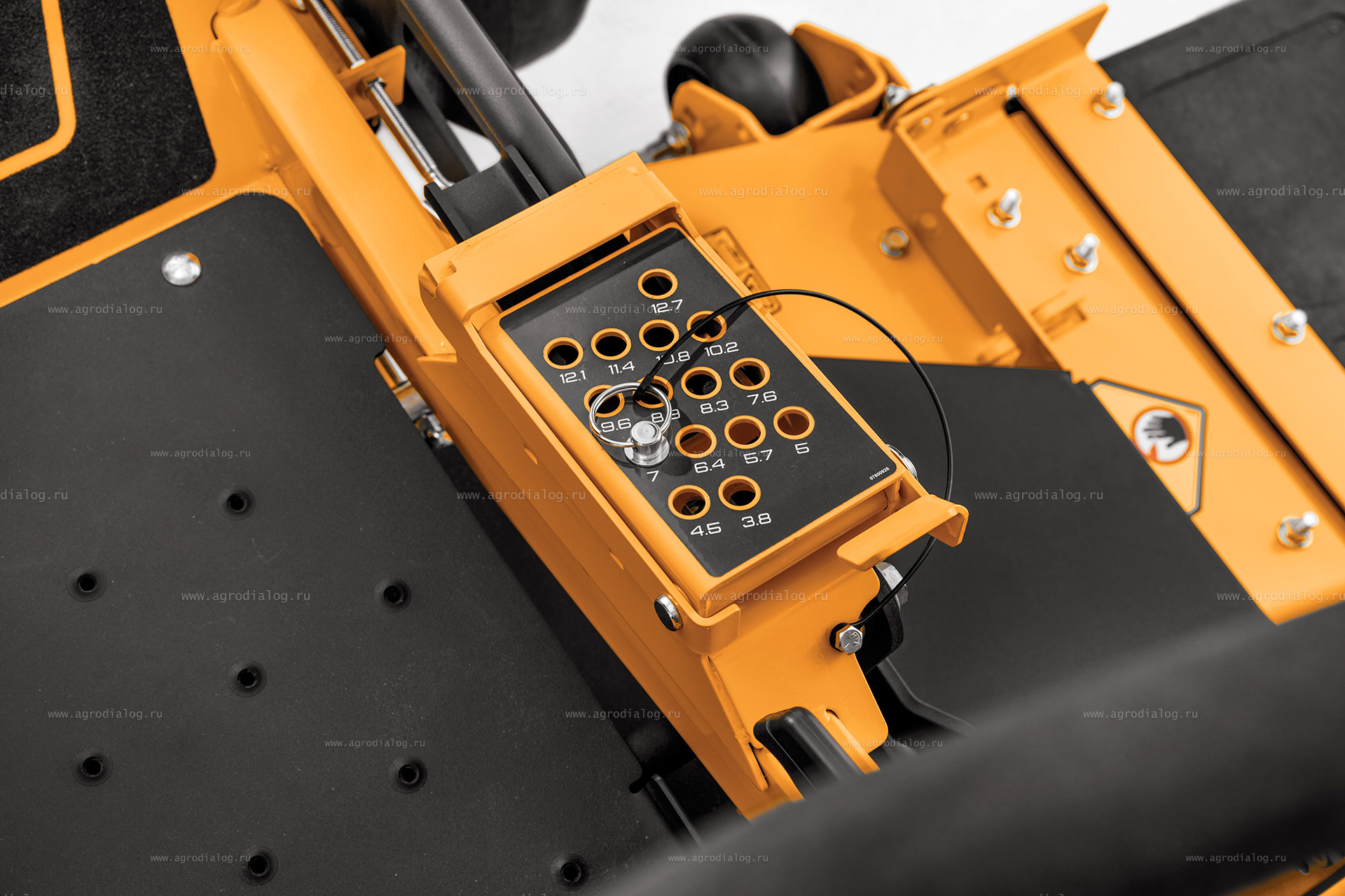 - Регулировка высоты скашивания с системой блокировки (препятствует самопроизвольной переустановке косильного механизма на неровностях).