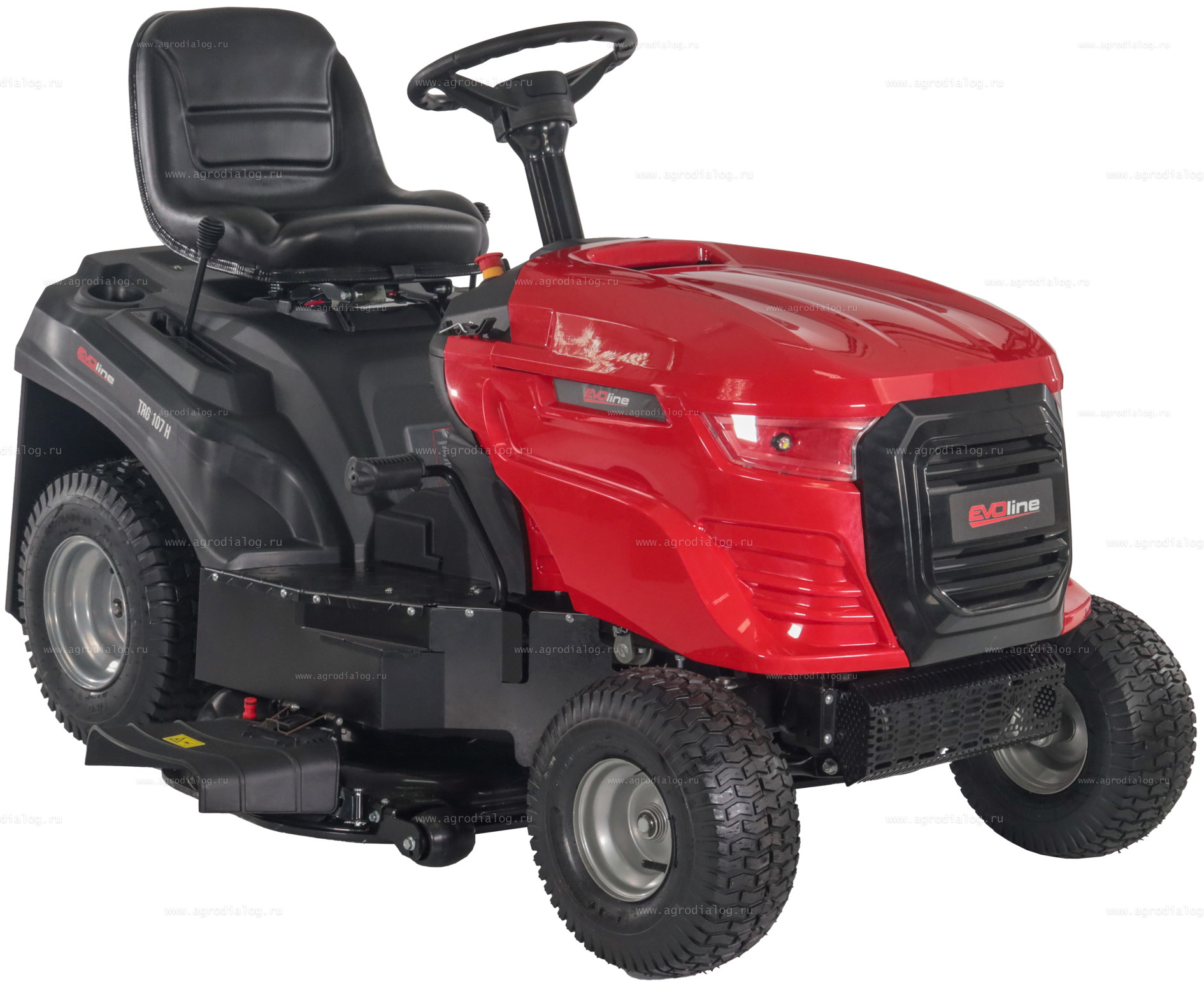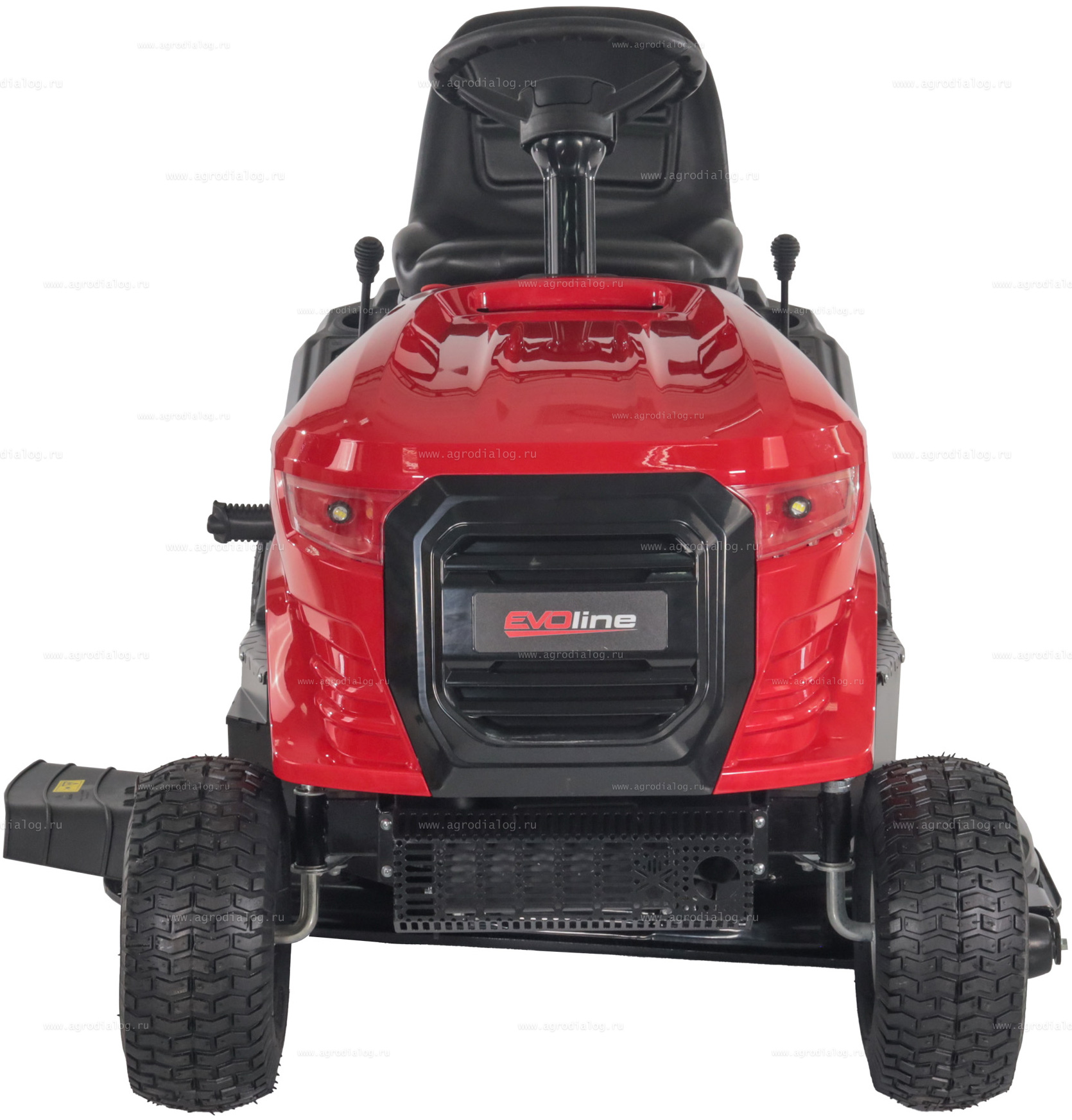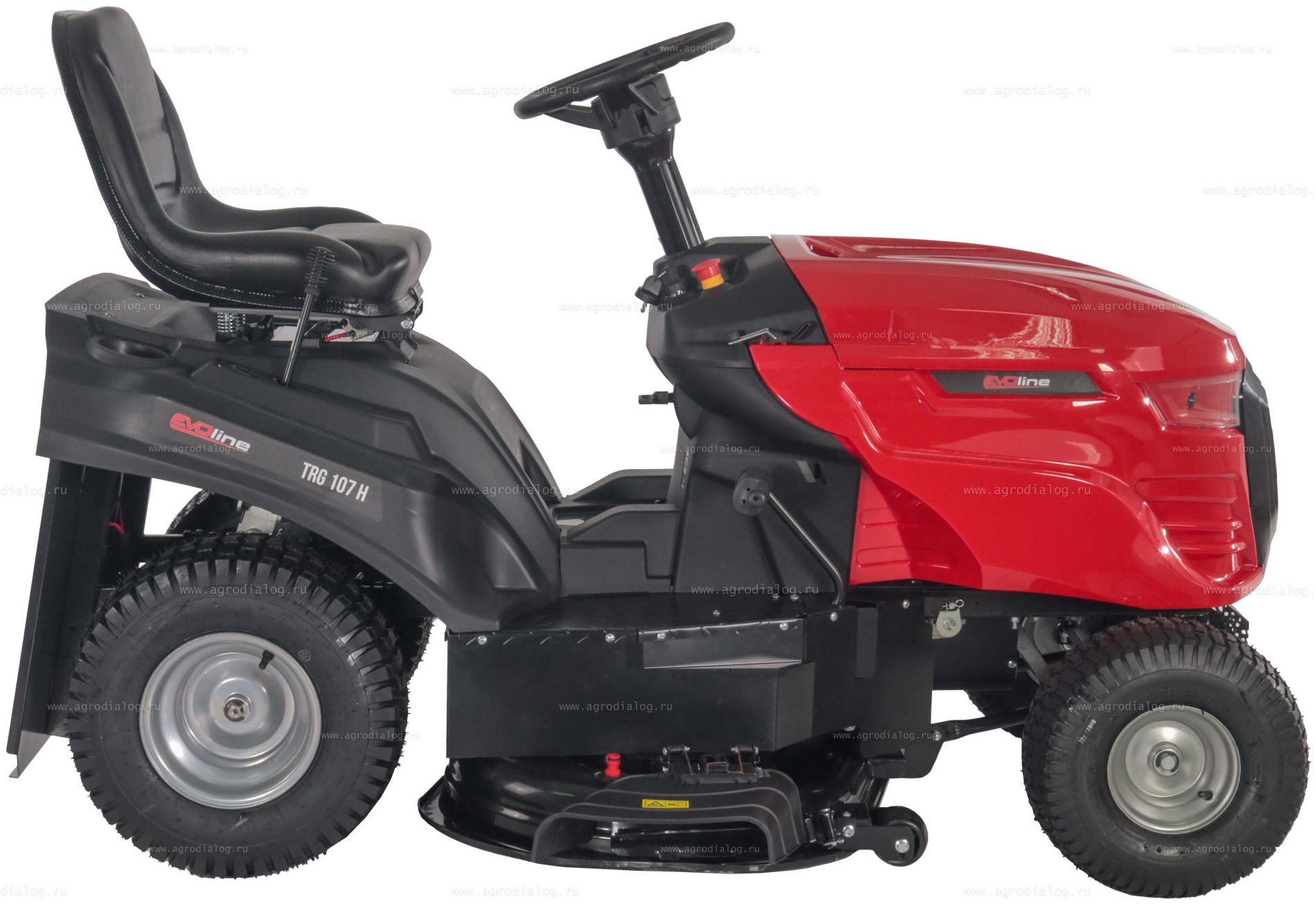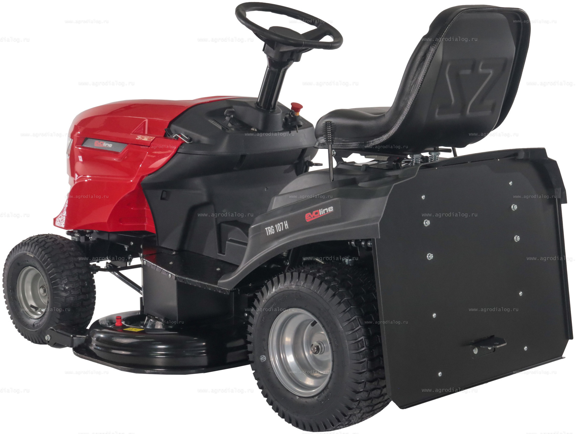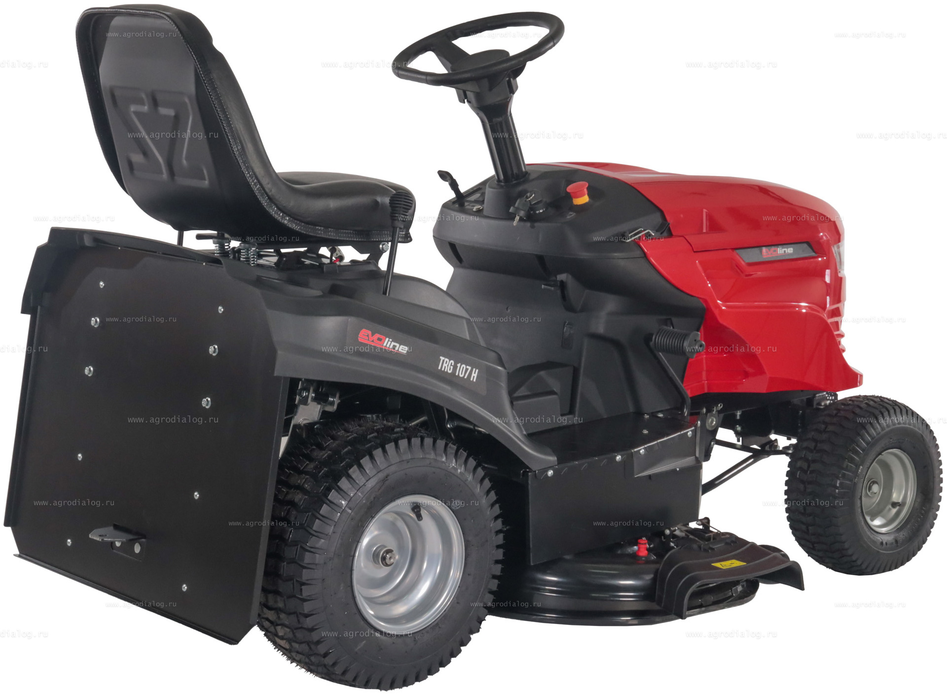 - Садовый трактор EVOline TRG 107 H оснащен системой Reverse mowing – позволяет производить кошение при движении задним ходом.