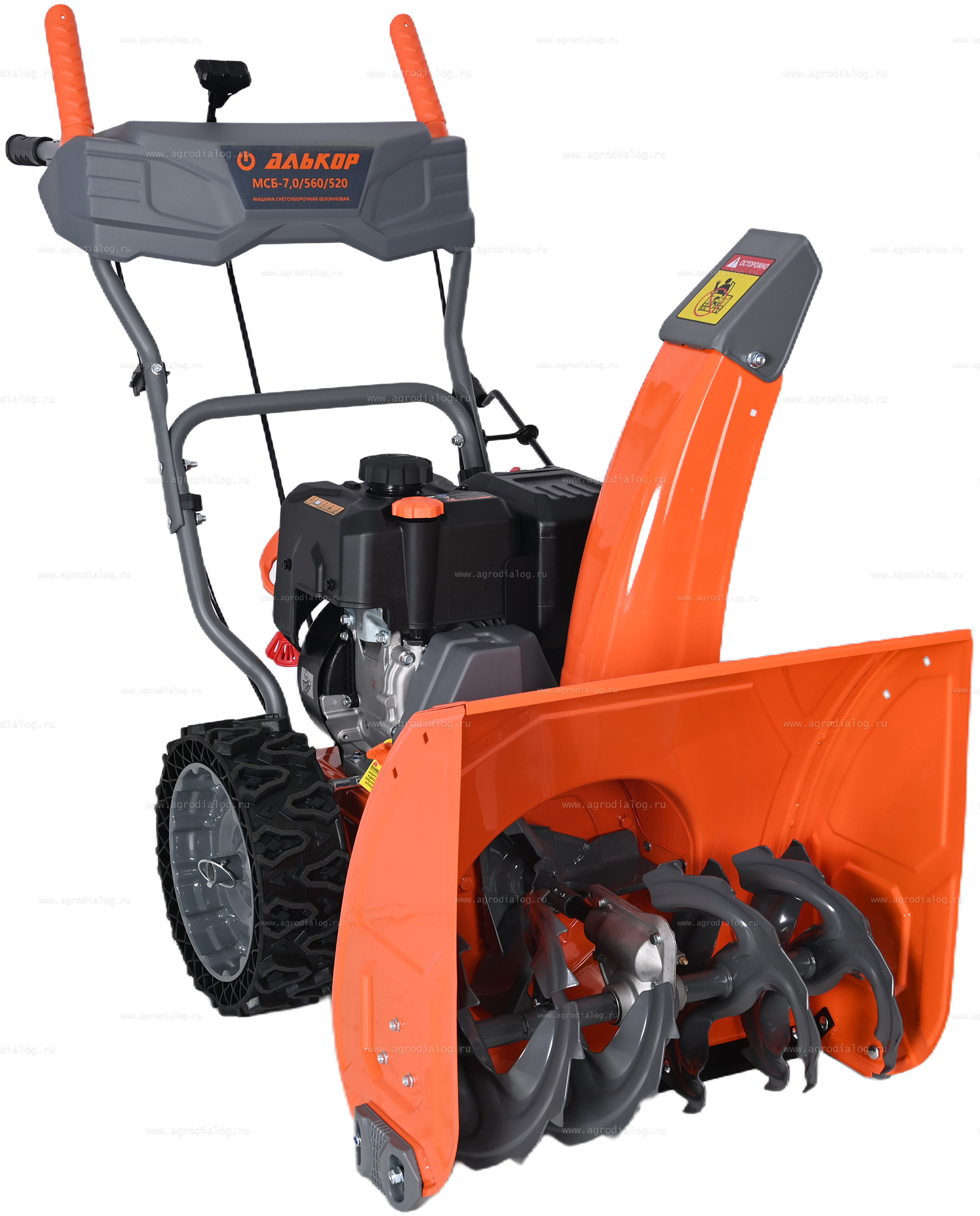 - Бензиновый снегоуборщик АЛЬКОР МСБ-7,0-560-520 удобен в использовании и обеспечивает качественную уборку территорий с разными дорожными покрытиями.