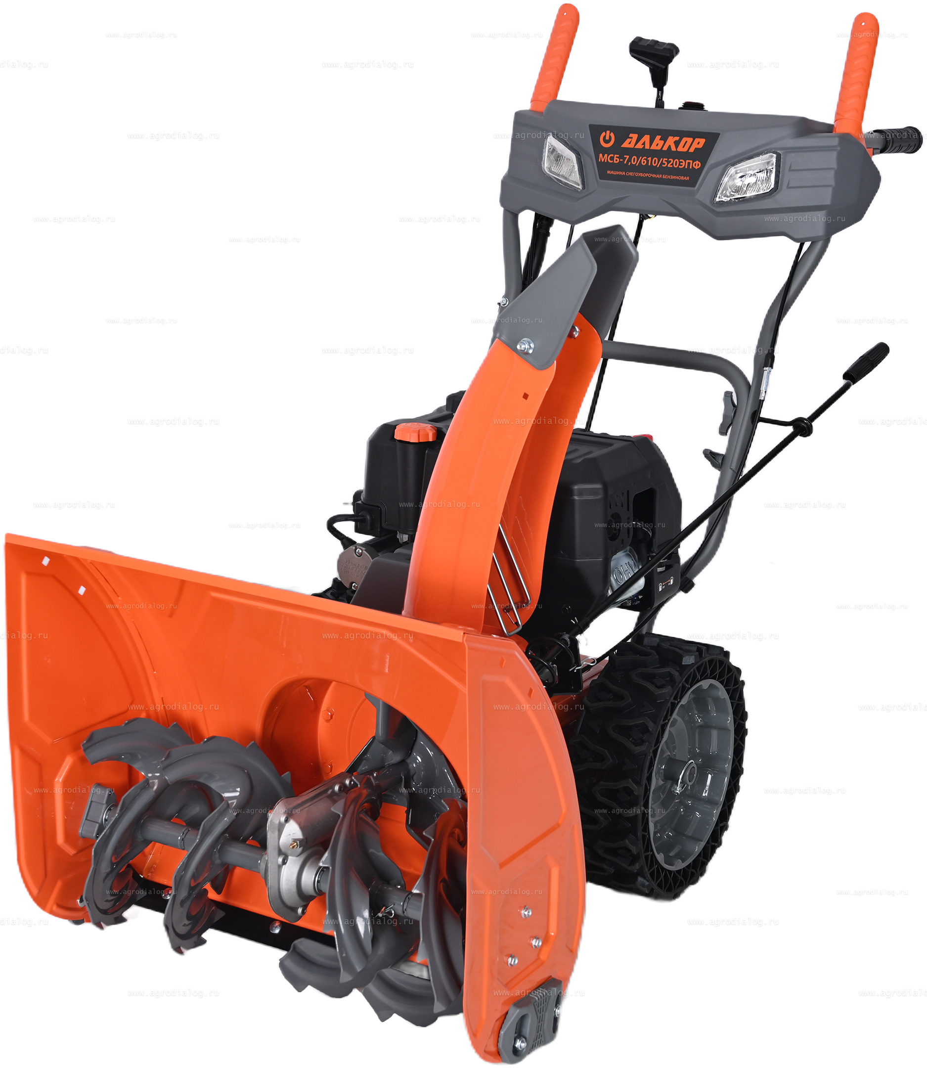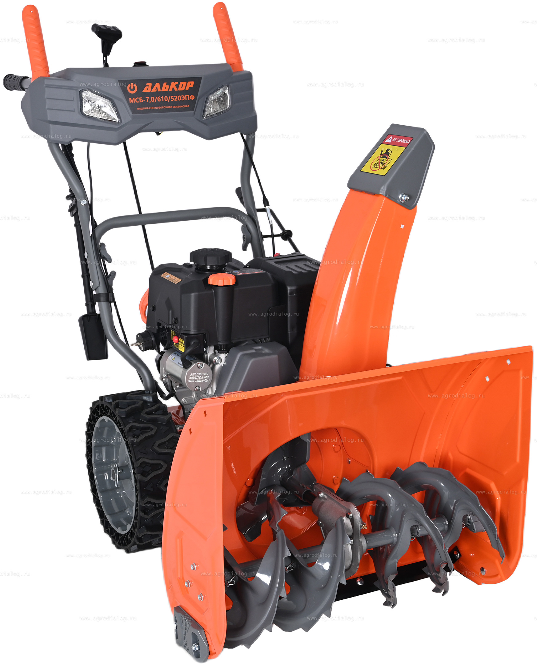 - Бензиновый снегоуборщик АЛЬКОР МСБ-7,0-610-520ЭПФ удобен в использовании и обеспечивает качественную уборку территорий с разными дорожными покрытиями.