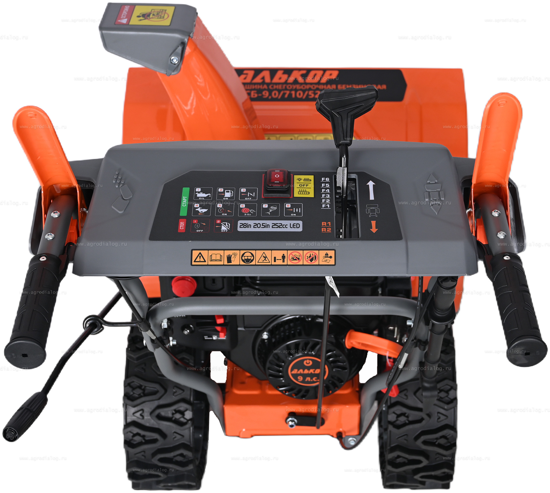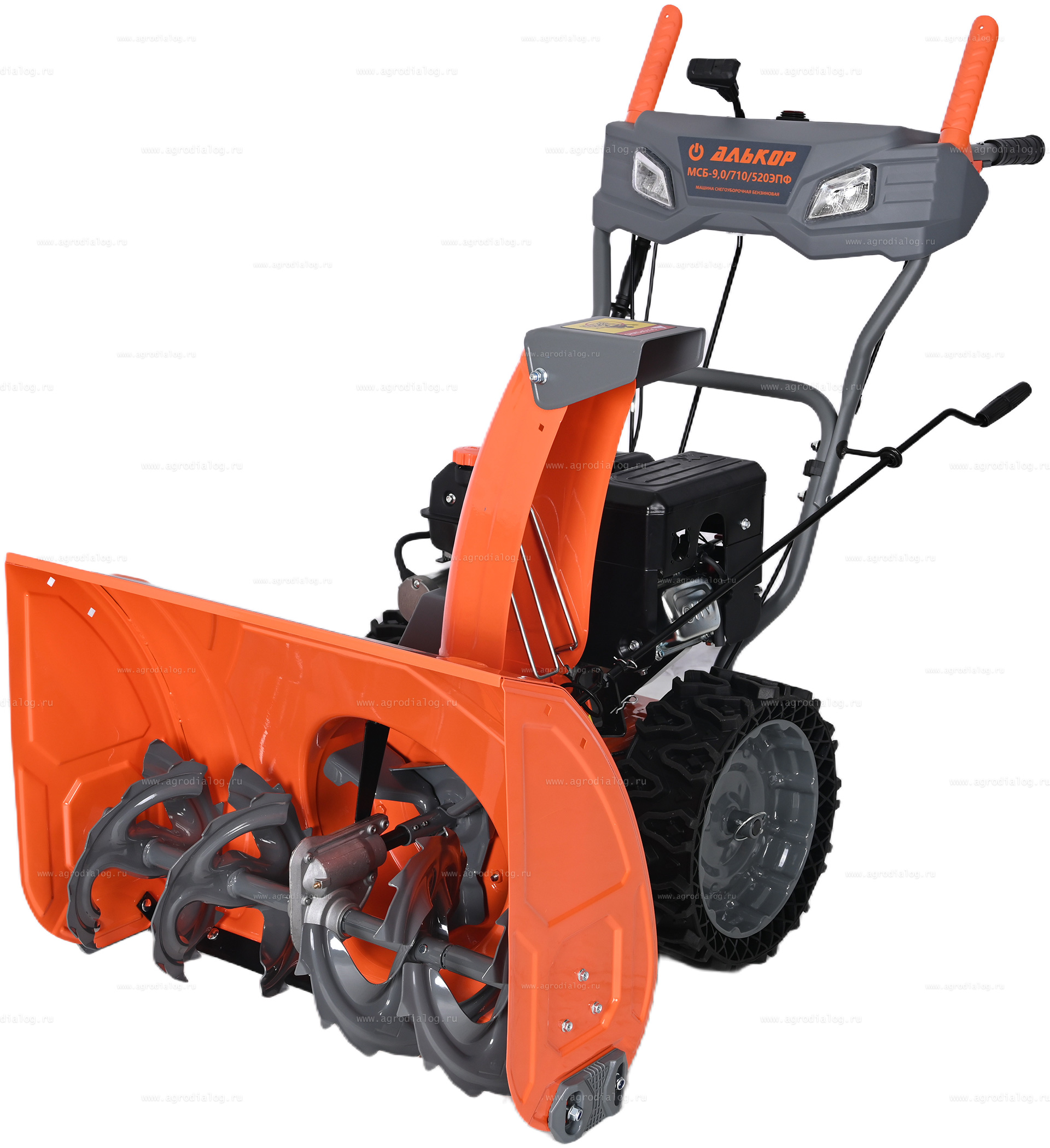 - Для передвижения по заснеженной и обледенелой поверхности бензиновый снегоуборщик АЛЬКОР МСБ-9,0-710-520ЭПФ оснащён большими бескамерными колесами со специальным протектором резины.
