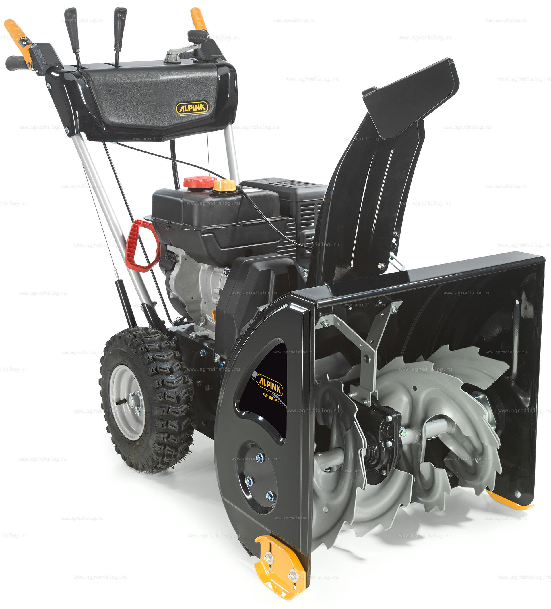 - Бензиновый снегоуборщик Alpina AS 56 P снабжен широкими пневматическими колесами со специальным протектором резины, облегчающим проходимость на заснеженной и обледенелой поверхности.