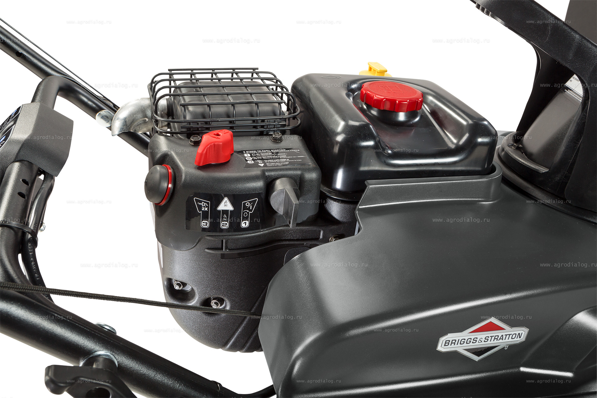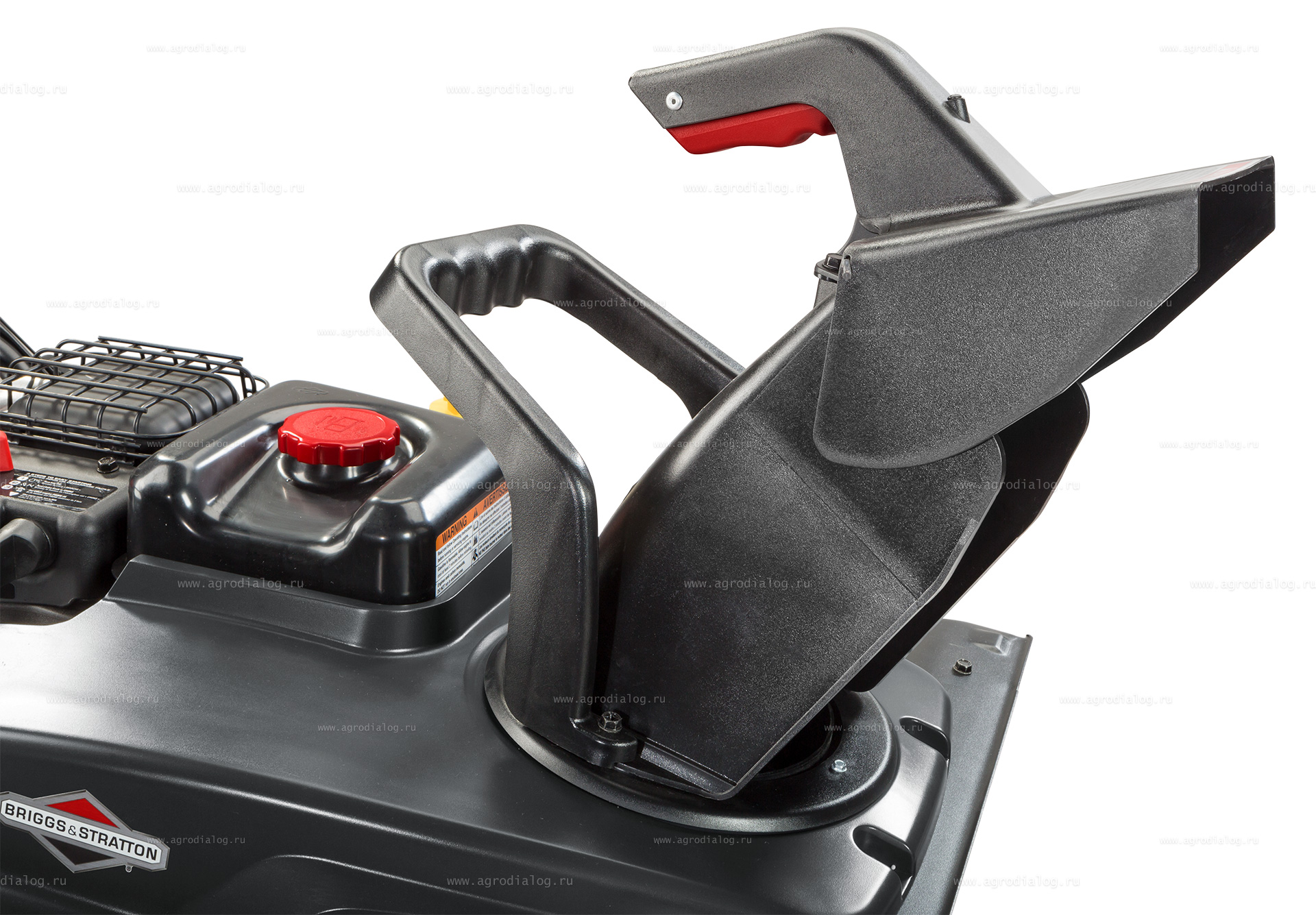 - Бензиновый снегоуборщик Briggs&Stratton 1022 E имеет крупные элементы управления, которыми легко оперировать даже в перчатках. Направление выброса снега удобно регулируется при помощи рукоятки. Дальность выброса снега регулируется непосредственно на дефлекторе.